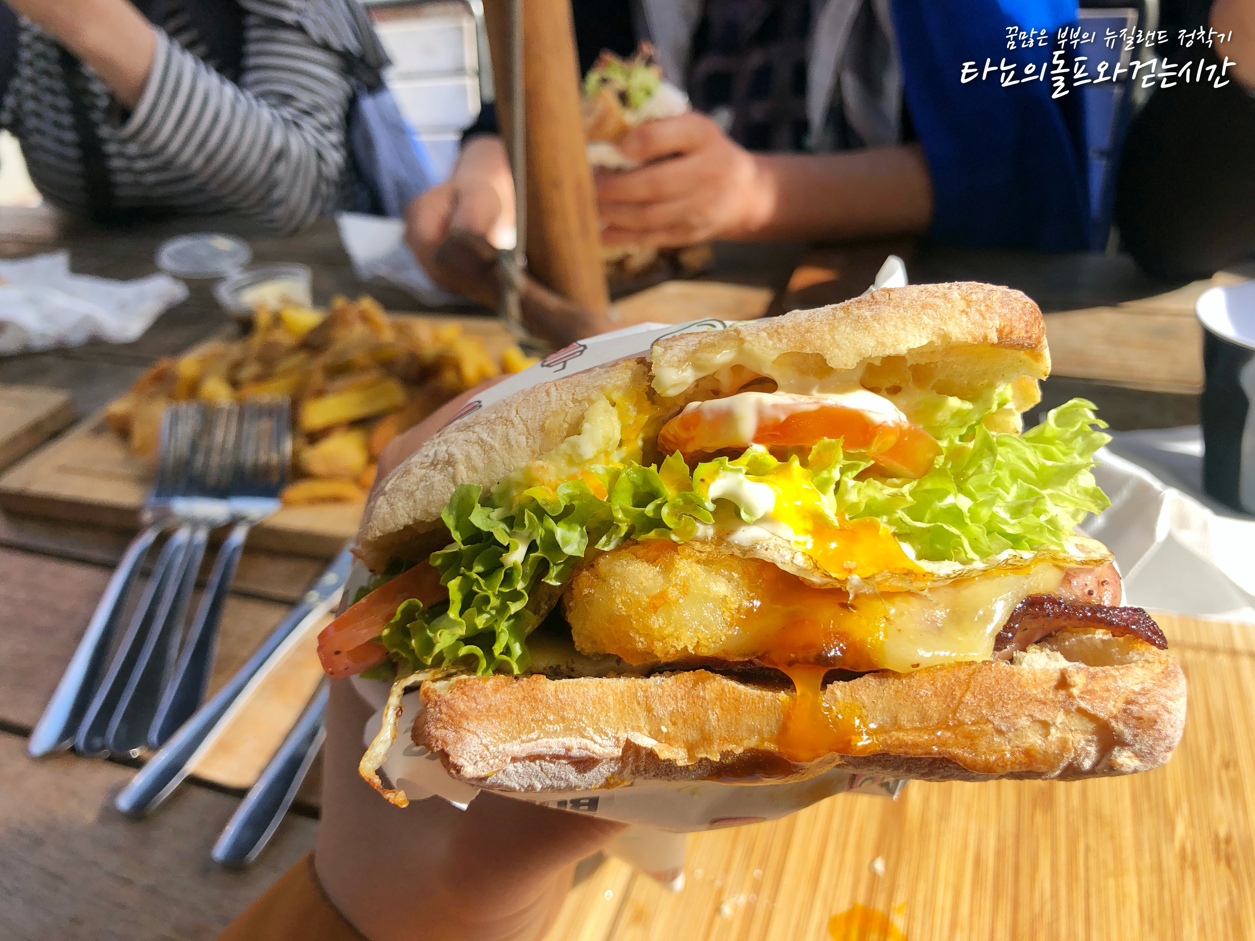 이게 제가 주문했던 베이컨 샌드위치에요. 해시포테이토와 치즈, 달걀프라이, 베이컨이 굉장히 넉넉하게 들어가 있었어요.