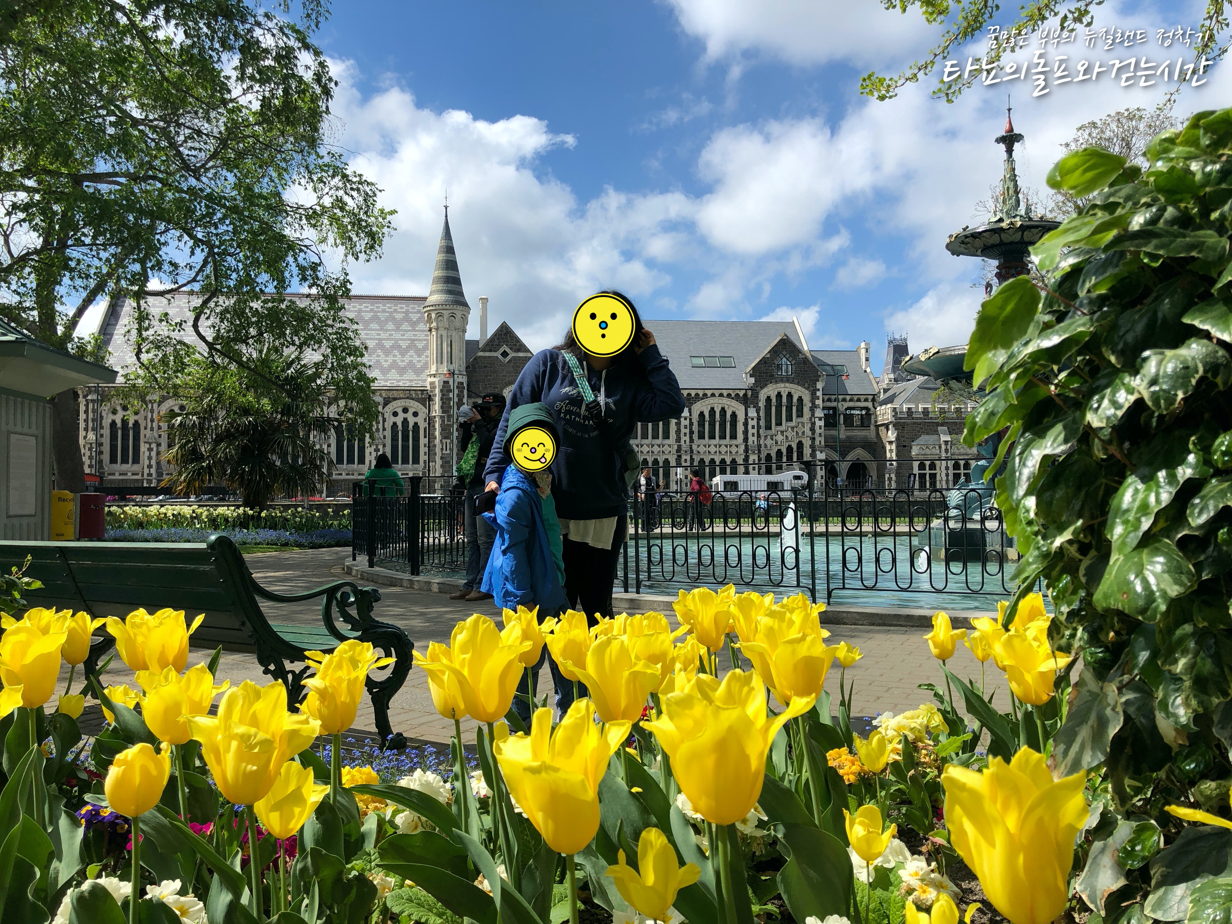 봄이라 저희는 아이들 데리고 헤글리 공원으로 갔어요. 온 사방이 튤립으로 가득했습니다. 이 곳은 헤글리 공원의 보타닉 가든에 있는 분수대입니다. 저희 뒤로 캔터베리 박물관이 보이네요.