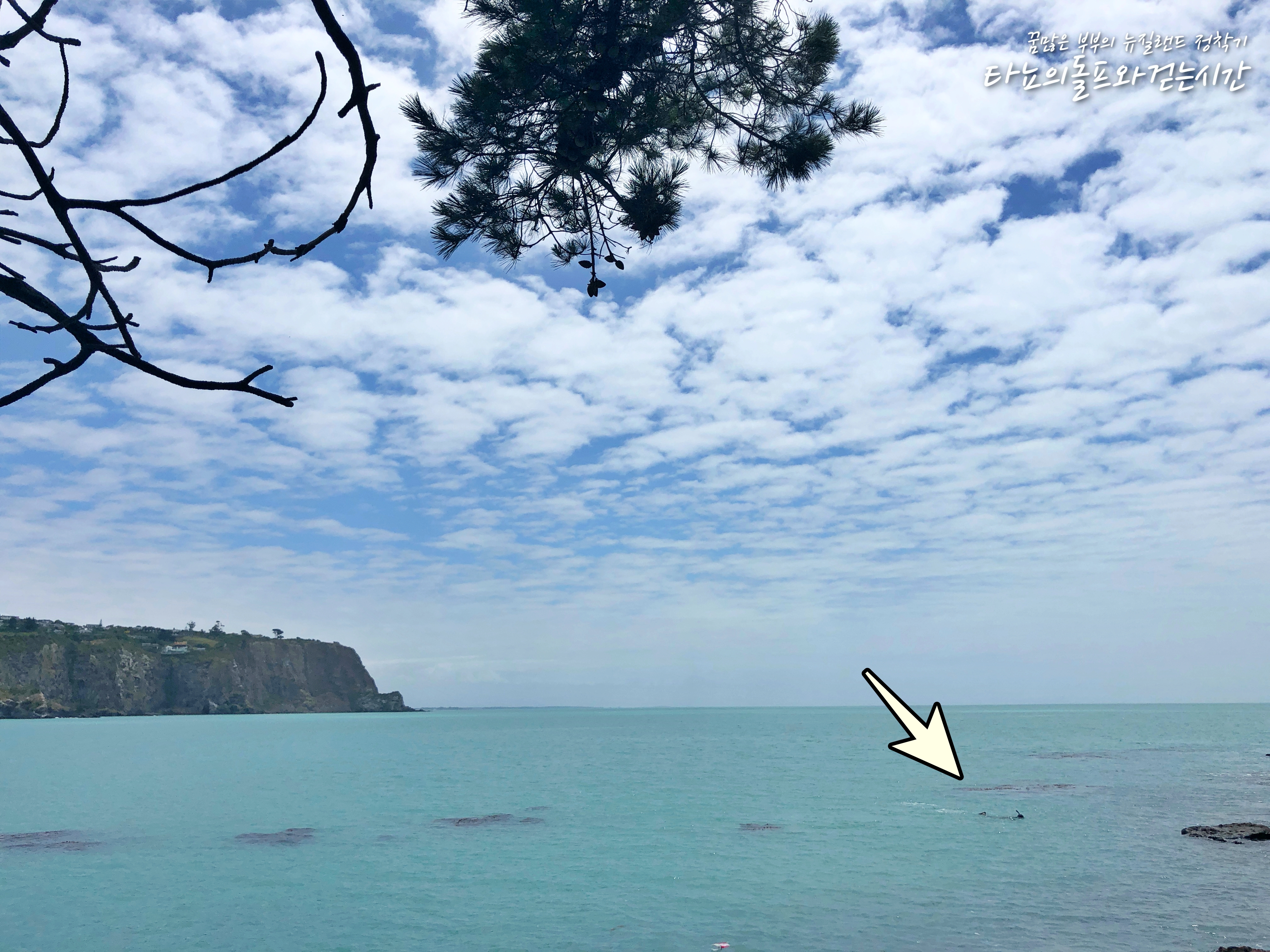 지금은 뉴질랜드의 여름이지만 바닷물은 굉장히 차갑습니다. 이게 남극이 가까워서 그런지 물은 언제나 차갑더라고요. 얼음장 같은 물에 그냥 들어가면 10분도 채 못있는데 수트를 입어서인지 저 친구는 굉장히 오랫동안 물 속에서 견딜 수 있었답니다. 비록 수트는 없지만, 바다 수영이 꼭 하고 싶었던 신랑은 수영복 바지와 스노쿨링 장비를 챙겨왔었습니다. 그리고 춥지만... 물 속으로 첨벙~ 뛰어들었지요. 5분 쯤 견뎠을까요? 추위에 떨며 나오더니 '나도 수트 하나 사야하나? 수영 진짜 하고 싶은데... 너무 차갑다 물이 ㅠㅠ' 그러더군요.