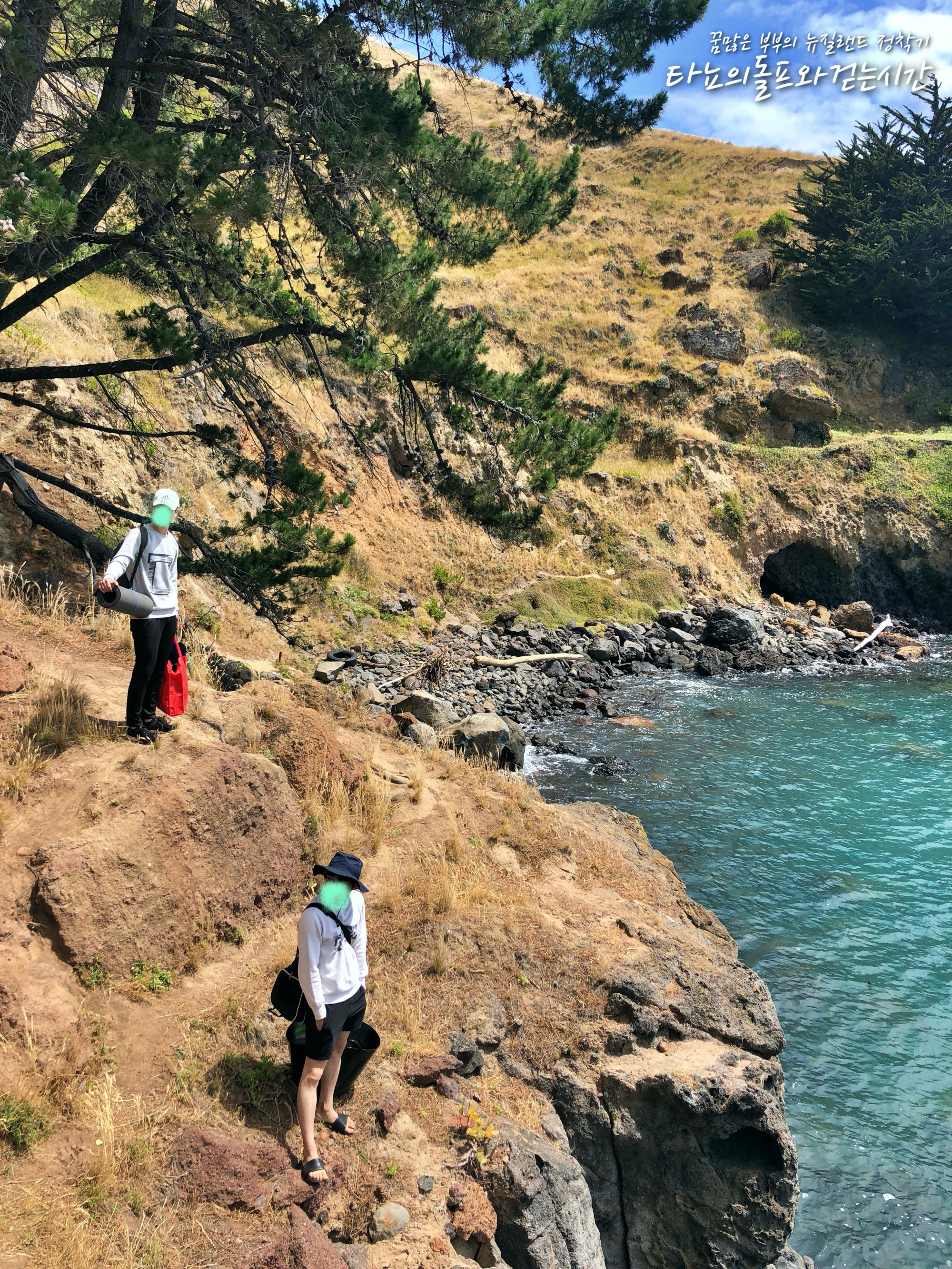 다행히 멀지 않은 곳, 테일러미스테이크 해변에 있는 고들리헤드 트래킹 코스로 갔습니다. 이 곳은 저희가 그저 걷기 위해서도 자주 갔었던 곳이라 익숙해서 좋았어요. 한 30~40분 걸었을까요? 괜찮은 포인트가 보여서 아래로 아래로 내려갔습니다.