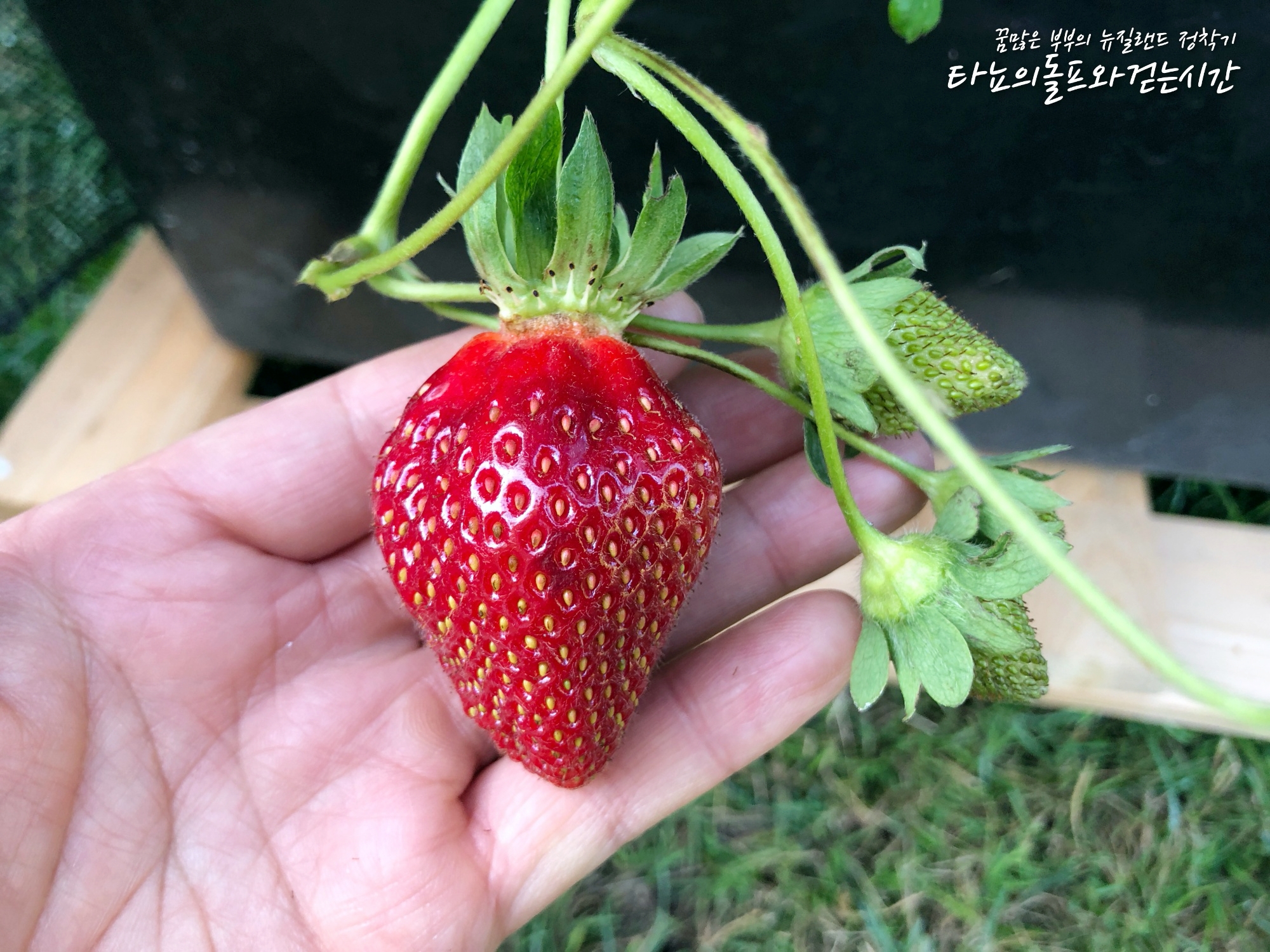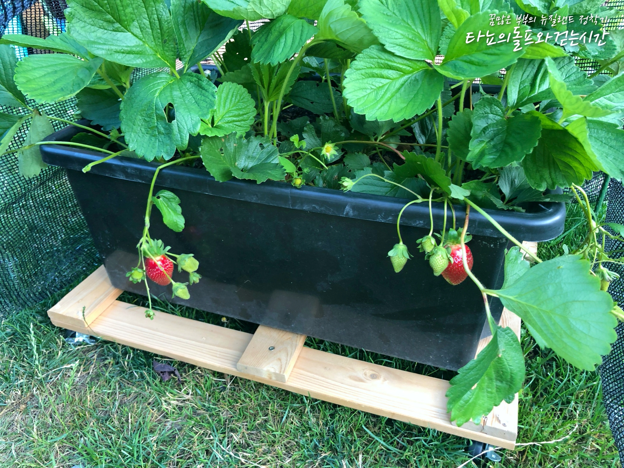 날씨가 좋은 어느 날, 딸기가 빨갛게 익었습니다. 확실히 망을 치니 새들이 침범하지 못하네요. 잘 익어서 따먹었는데 정말 새콤하기만 했어요. 설탕물을 좀 줘야할까요 ^^;; 뉴질랜드는 마트에서 판매하는 딸기도 새콤하기만 합니다. 달콤하면 참 좋을텐데... 어쨌든 유기농 딸기!