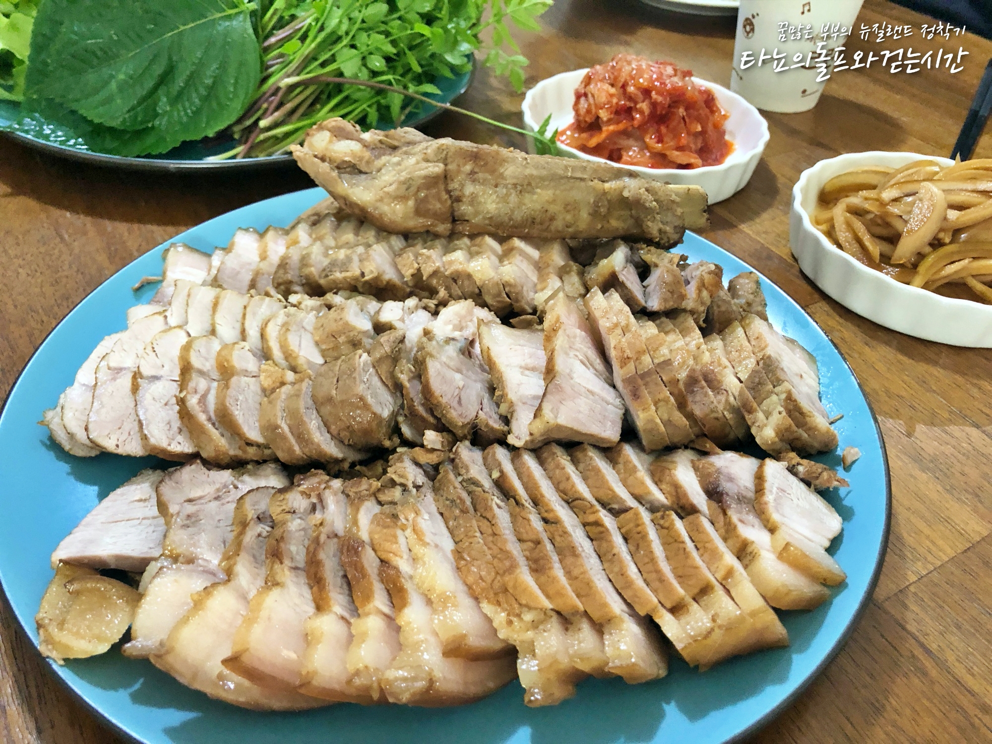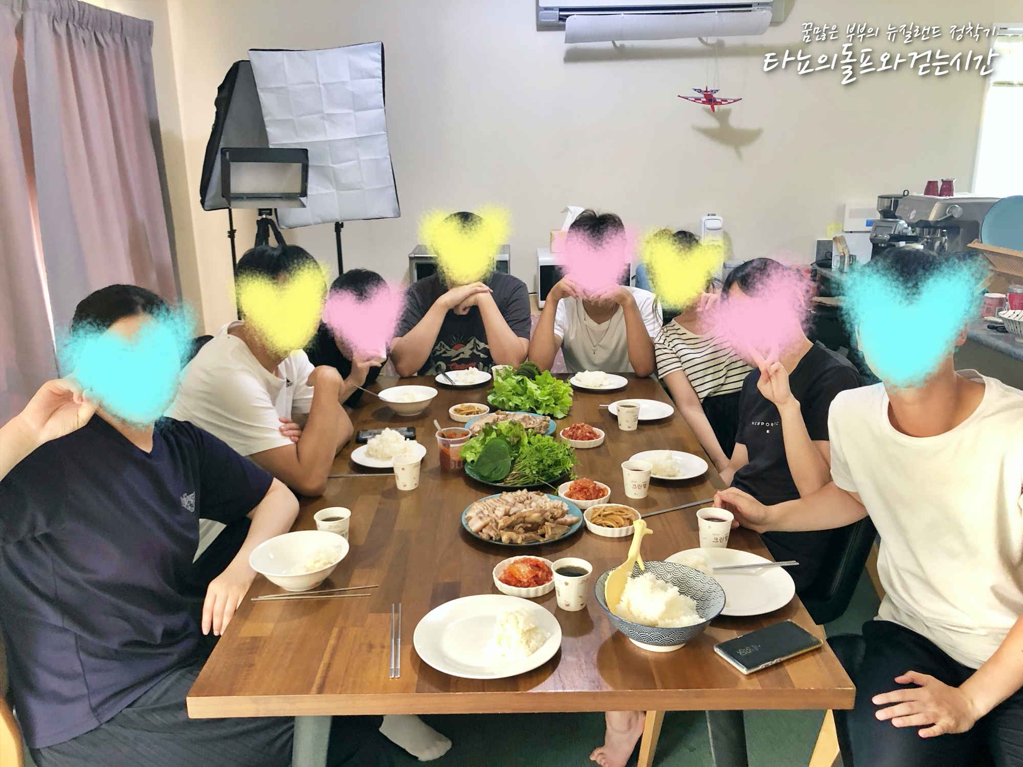 함께 살고 있는 플랫들과 홈스테이 학생, 또 서로 알고 있는 몇몇 청년들 함께 초대해서 보쌈 만들어 먹었어요. 고기가 넉넉해서 행복~
