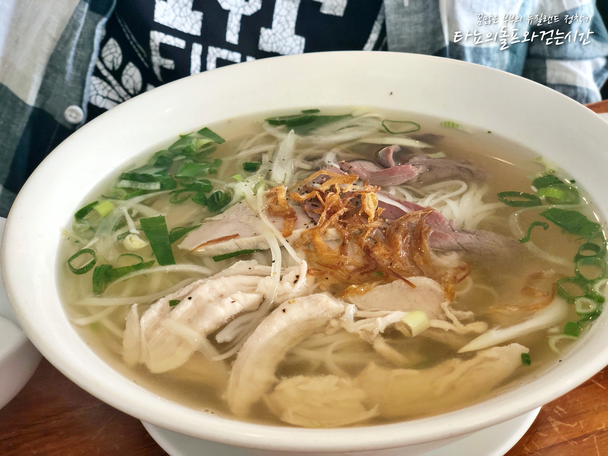 M이 가장 좋아하는 최애 외식코스, 쌀국수 전문점 '파이브스타'에 들러서 저녁을 먹었어요. 엔트리로 오징어 튀김, 치킨 먹고(각각 9불) 메인으로 각자가 마음에 드는 쌀국수를 주문했답니다. 사진 속에 보이는 쌀국수는 저희 신랑이 주문한 컴비네이션 쌀국수에요. 이렇게 주문하면 양고기, 소고기, 닭고기가 모두 들어갑니다. 2불 더 추가하면 곱배기로 먹을 수도 있지요.