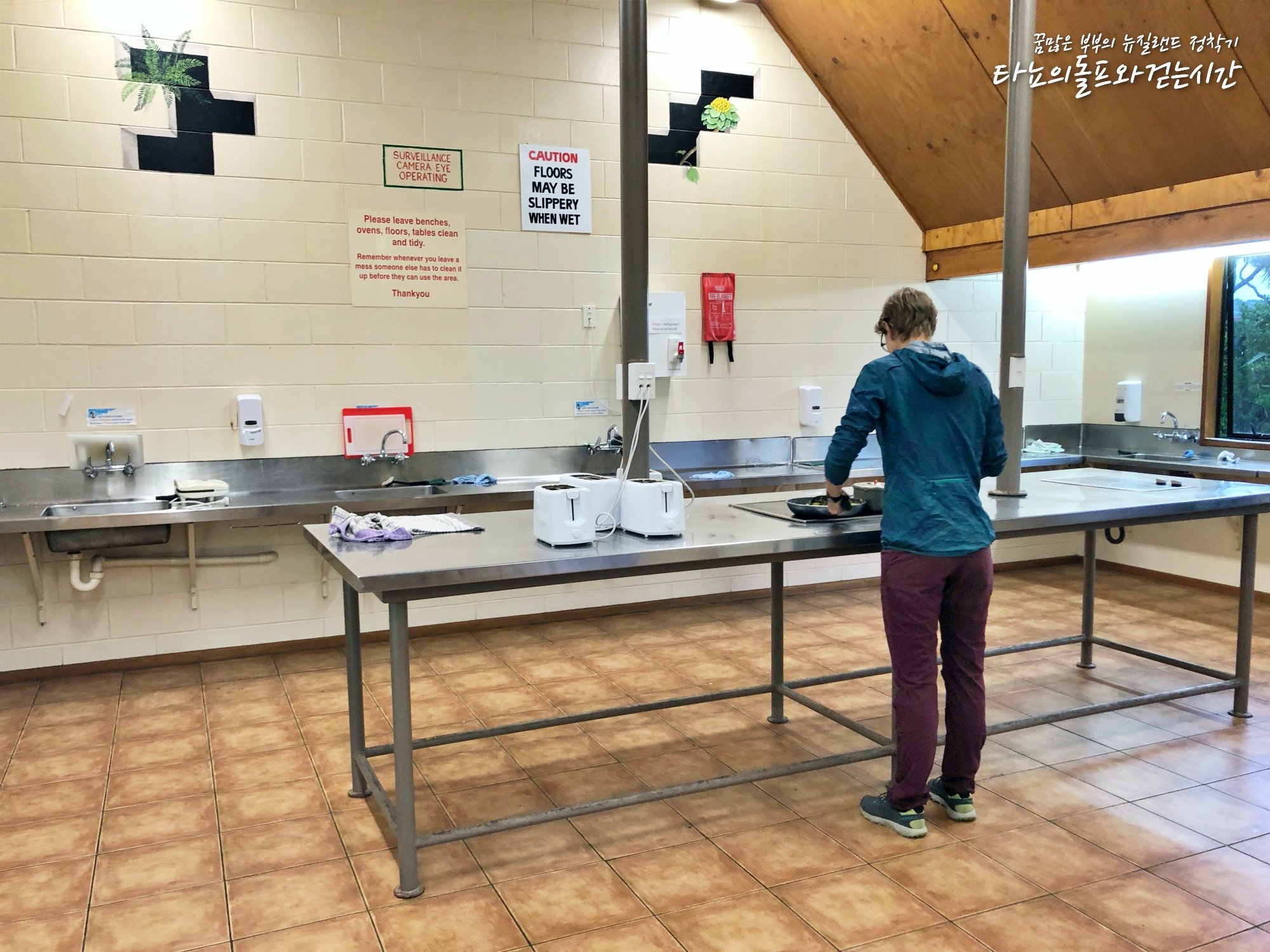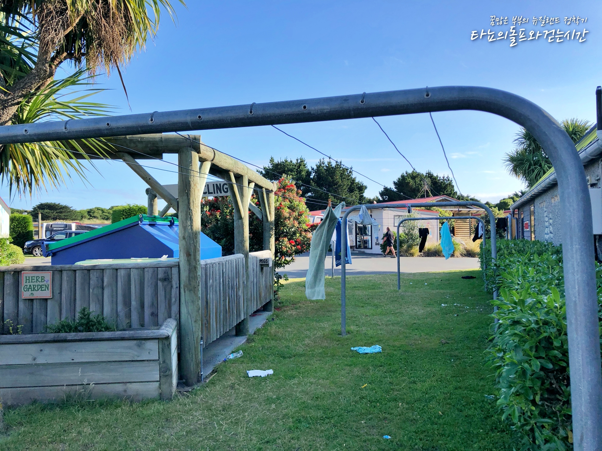 전 날 묵었던 오아마루의 홀리데이 파크는 잔디밭이라도 사이트 구분이 확실해서 예약한 자리에만 텐트를 칠 수 있었는데, 이 곳은 잔디구역이라면 어디든 텐트를 칠 수 있었어요. 어디에 치든, 얼마나 넓게 치든 아무 관계없는거죠. 마운트쿡 캠핑장과 비슷하게 운영되고 있었어요.
