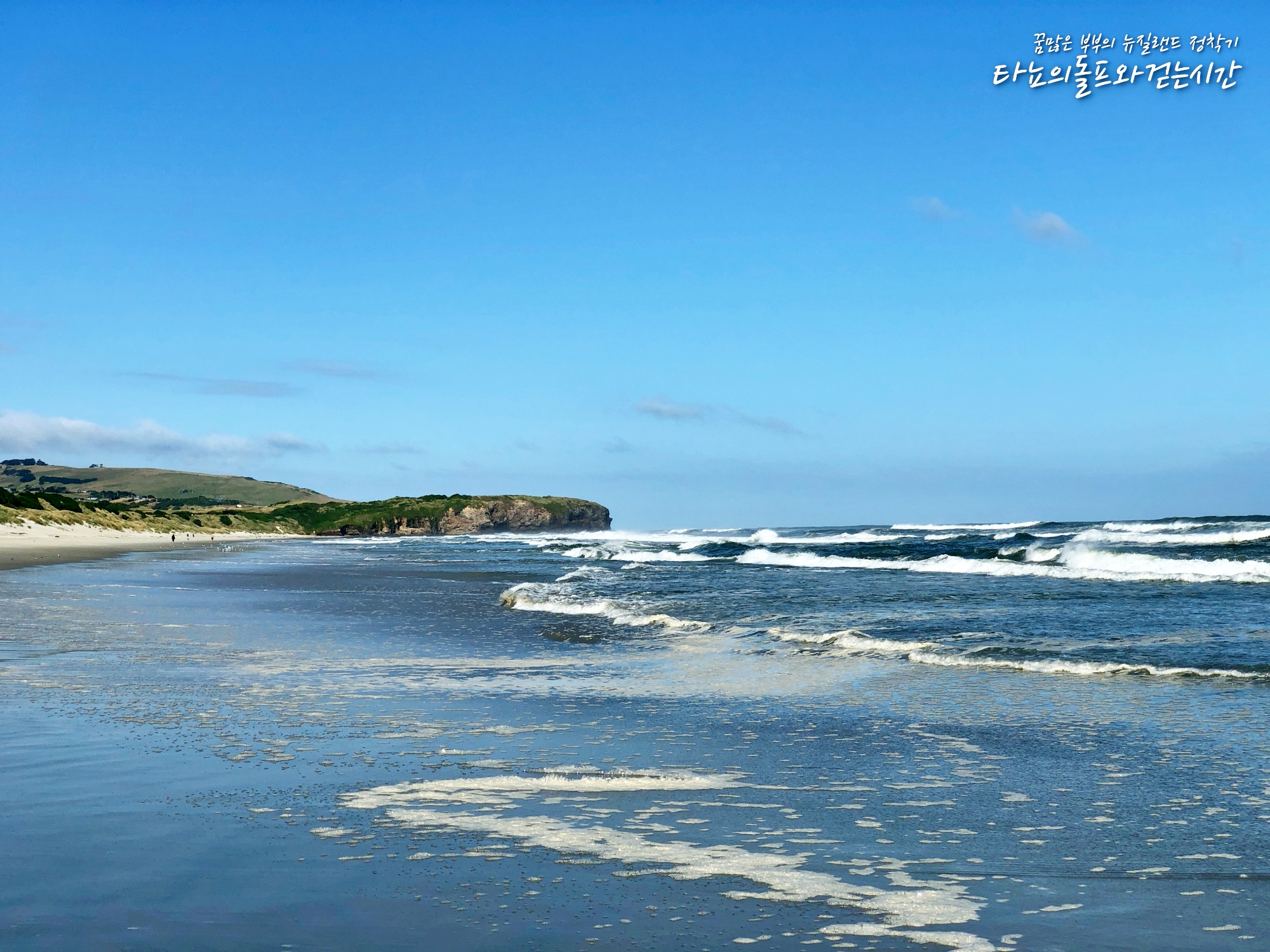 바닷물에 발을 담그고 바다를 바라보고 있으니 마음 깊은 곳까지 시원해지는 기분이었어요. 그나저나 뉴질랜드 바닷물은 역시 여름에도 얼음물! 너무너무 차가웠어요.