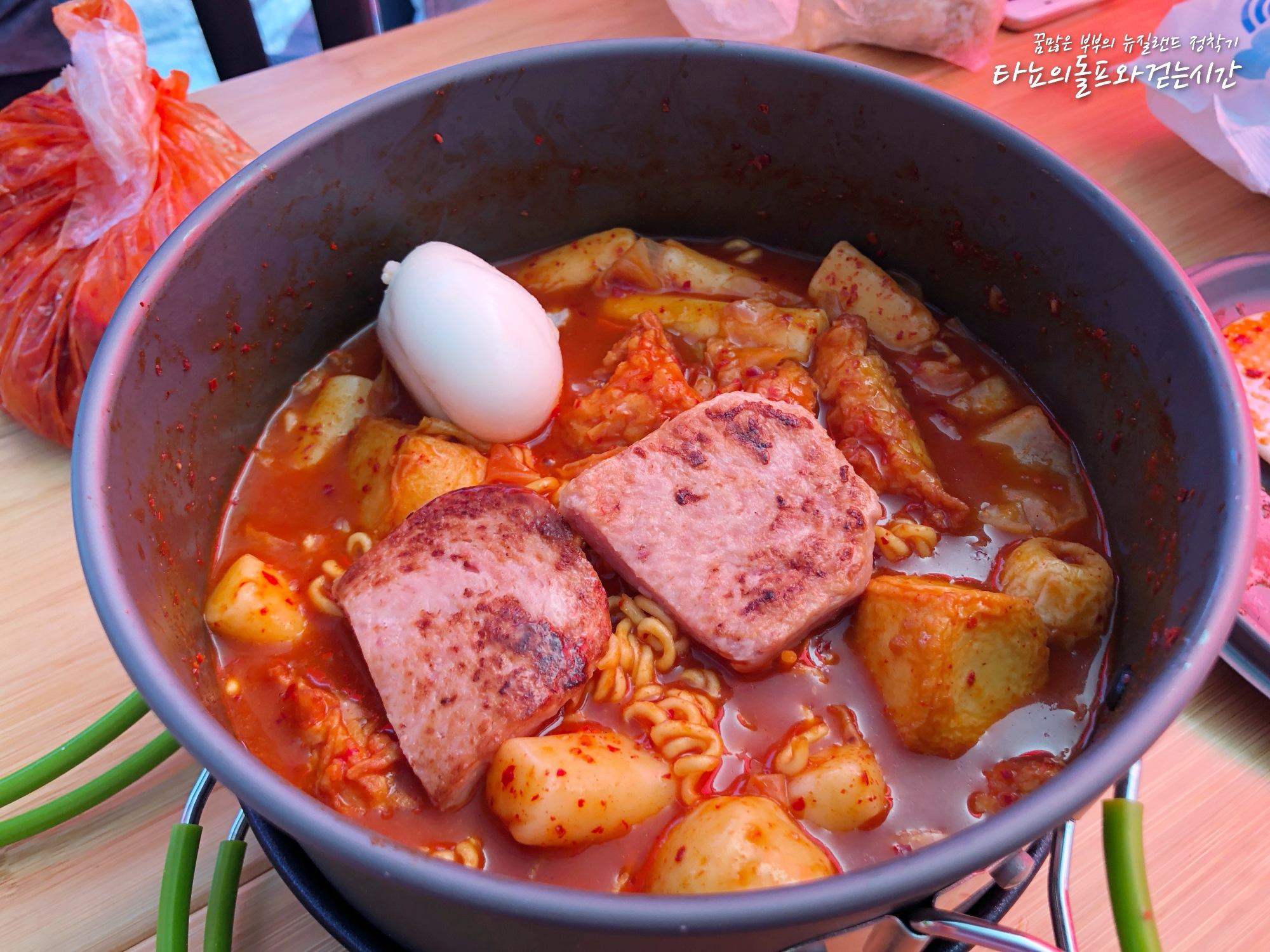 텐트 안을 모두 정리한 뒤 늦은 점심으로 먹은 떡볶이에요. 캠핑에 떡볶이를 준비한건 이번이 처음이었는데요. 다음에 캠핑 갈 때도 꼭 챙겨가야할 1순위 음식으로 지정되었어요. 진짜진짜 맛있고 캠핑 분위기와도 너무너무 잘 어울리더라고요.