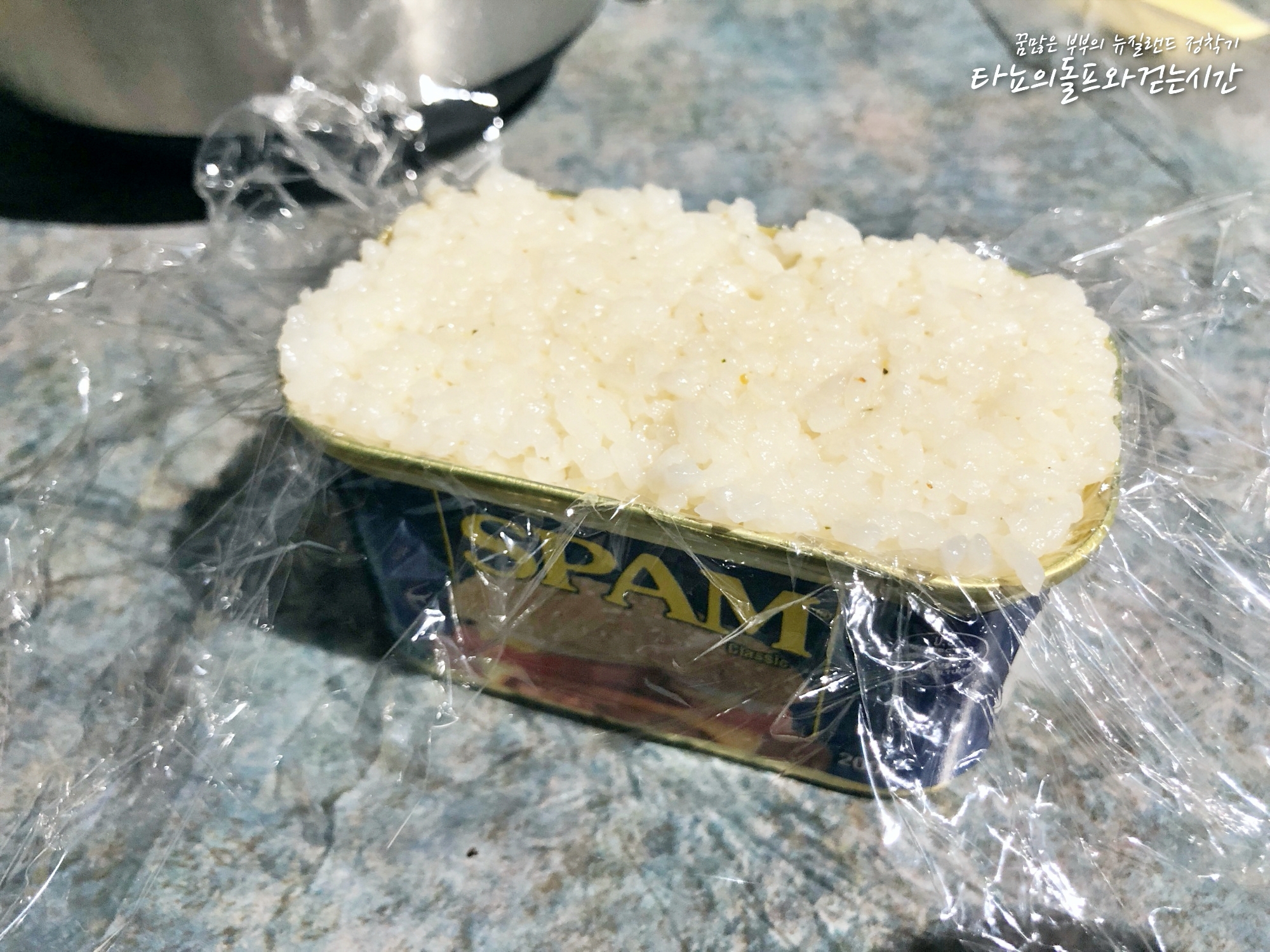 스팸무스비 준비는 정말 간단해요. 밥은 김밥 싸듯이 준비하면 되고 스팸 통에 비닐랩 깔아서 차곡차곡 넣어 만들면 되죠. 언제 어떻게 먹어도 스팸은 실패가 없답니다.
