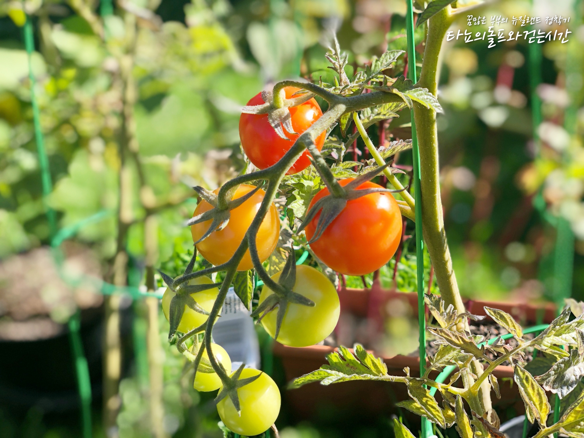 에휴, 이녀석들은 언제 따먹을 수 있을까 싶었는데, 드디어 몇 개 따먹을 수 있게 되었네요. 작년 10월? 언니가 잠시 왔을 때 잘 익은 토마토를 썰어서 화분에 심었었어요. 그 것이 봄에 싹을 틔우고 자라기 시작해서 지금까지 키웠는데요. 이번 여름은 유난히 날씨가 좋지 못했고 게다가 저희집 정원이 햇살이 그리 많이 들어오는 편이 아니라서 결국 열매를 많이 맺지 못했어요. 몇개월 걸린건가요. 4개월만에 이제 겨우 토마토 4개 따먹었습니다.