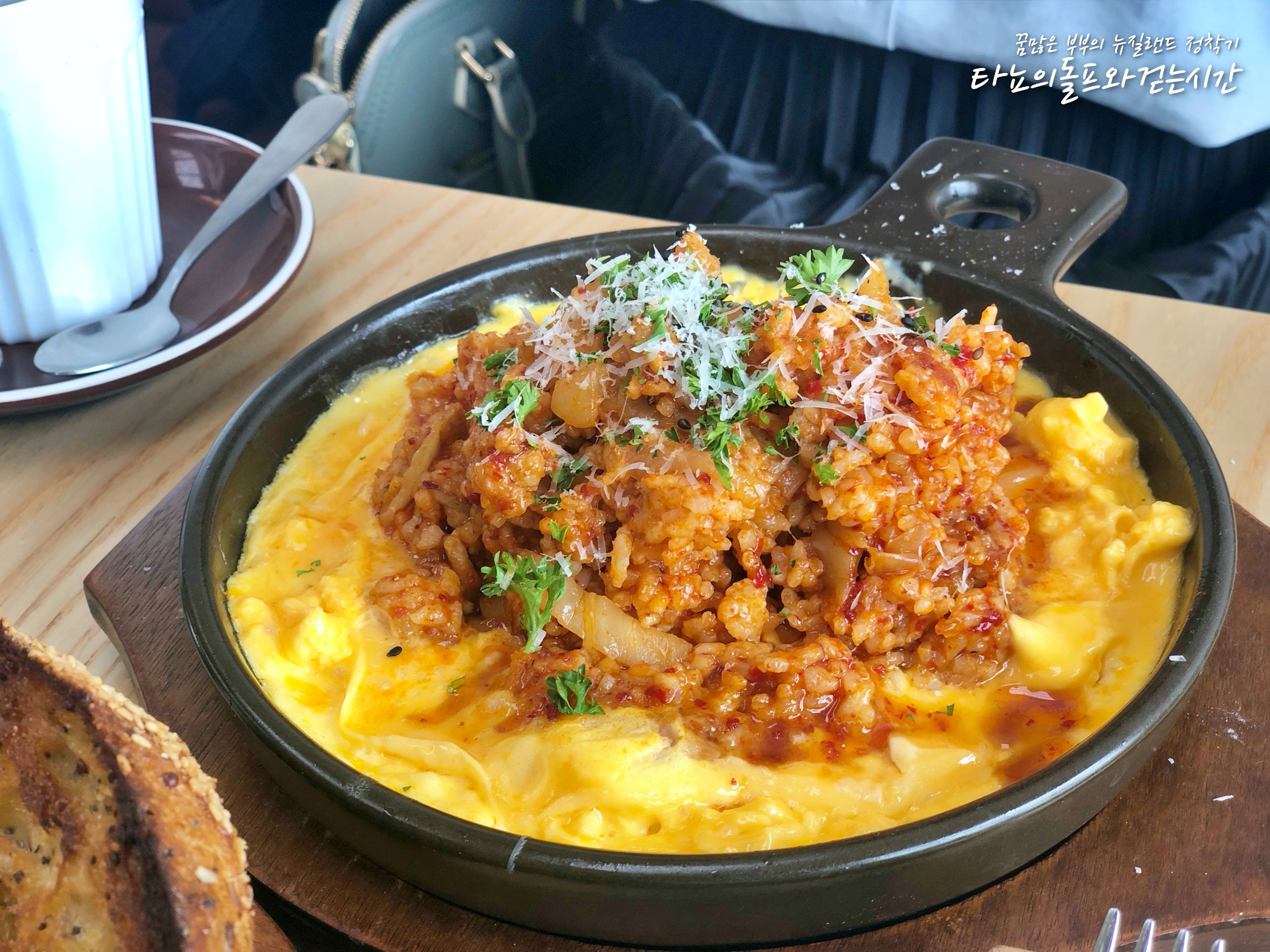 더욱 놀라운 것은 이 가게 메뉴판에 한국발음 그대로 '고추장 샥슈카(에그 인 헬)'와 '김치 프라이드 오믈렛'이 있었다는 거ㅎㅎㅎ 알고보니 여기 주방이 싹 다 한국인이네요. 가게를 한국인이 운영하고 있었는데 진짜 한국 느낌 1도 안나서 전혀 몰랐어요. 게다가 주방한 싹 다 한국인이지 홀에 있는 바쪽에는 싹 다 키위들이 일하고 있어서 상상도! 손님도 저희 빼고 싹 다 키위들이었는데, 김치 메뉴를 넘나 맛있게 드시고 계셔서 참 신기했지요. 차일드 시스터의 모든 메뉴에는 김치추가가 가능하다고 합니다. 혹시 치치 계신다면 가보시길~