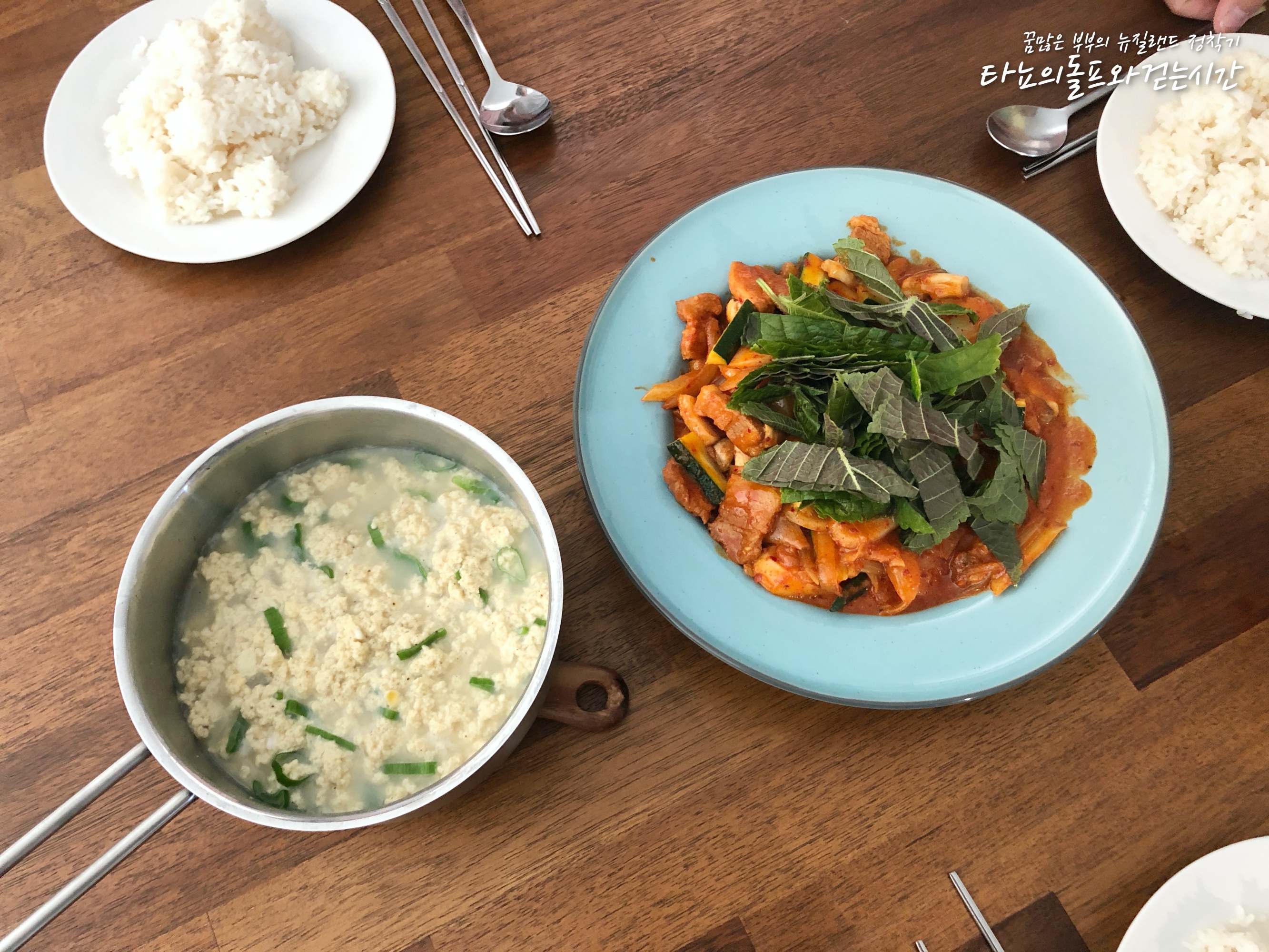 한국 가게에서 나오는 것처럼 달걀찜을 만들줄 몰라서 달걀국인지, 달걀찜인지 헷갈릴 정도로 애매하게 끓여낸 달걀찜이지만 맛있다고 해주니 참 기분이 좋더군요. 이틀 연속이지만, 제육볶음이랑 어울릴 것 같아서 한 번 더 만들어냈어요.