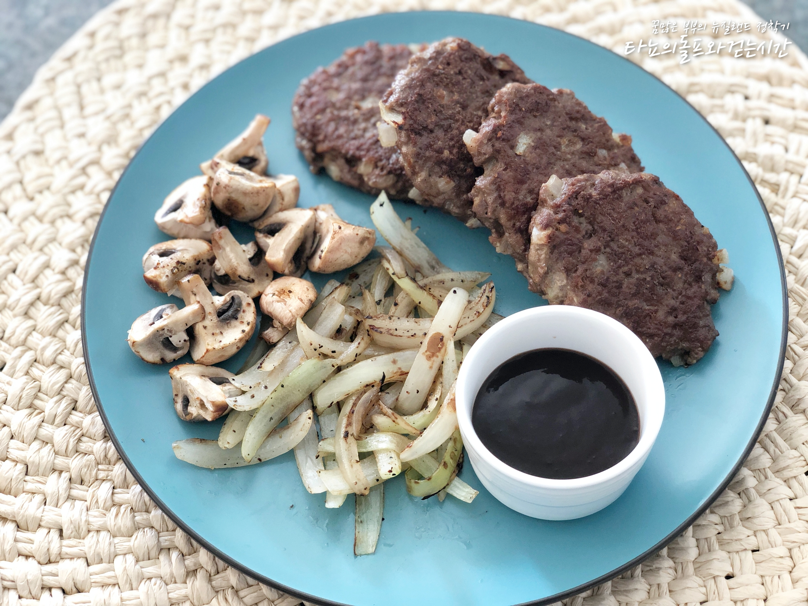 이 날은 저희 부부가 외출을 했어요. 저녁 약속이 있어서 우리 만식이 밥은 이렇게 떡갈비를 만들어 주고 나갔습니다. 얼마나 맛있게 먹었는지는 모르겠지만, 일단 다녀오니 싹 비웠더라고요.