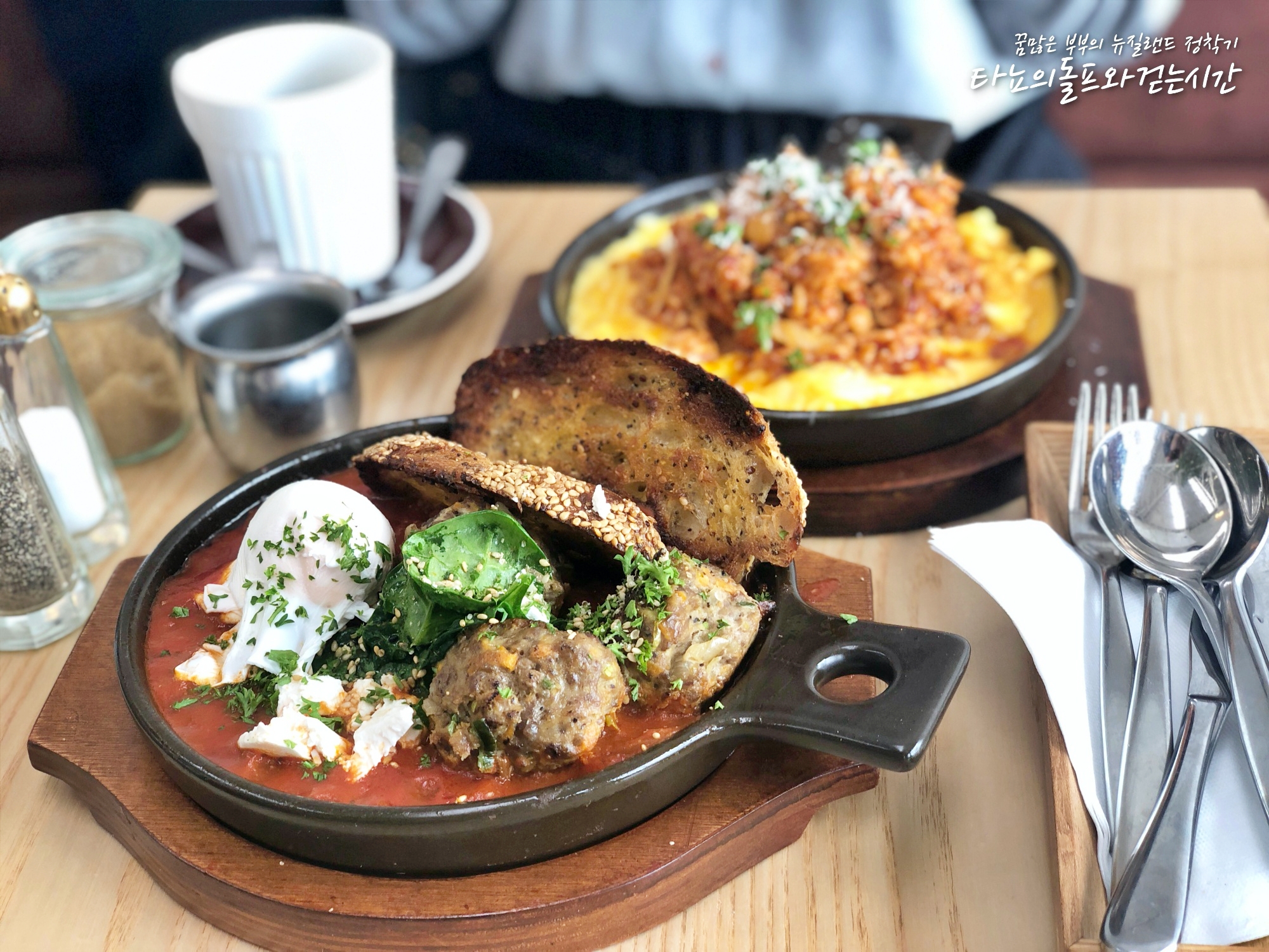 더욱 놀라운 것은 이 가게 메뉴판에 한국발음 그대로 '고추장 샥슈카(에그 인 헬)'와 '김치 프라이드 오믈렛'이 있었다는 거ㅎㅎㅎ 알고보니 여기 주방이 싹 다 한국인이네요. 가게를 한국인이 운영하고 있었는데 진짜 한국 느낌 1도 안나서 전혀 몰랐어요. 게다가 주방한 싹 다 한국인이지 홀에 있는 바쪽에는 싹 다 키위들이 일하고 있어서 상상도! 손님도 저희 빼고 싹 다 키위들이었는데, 김치 메뉴를 넘나 맛있게 드시고 계셔서 참 신기했지요. 차일드 시스터의 모든 메뉴에는 김치추가가 가능하다고 합니다. 혹시 치치 계신다면 가보시길~
