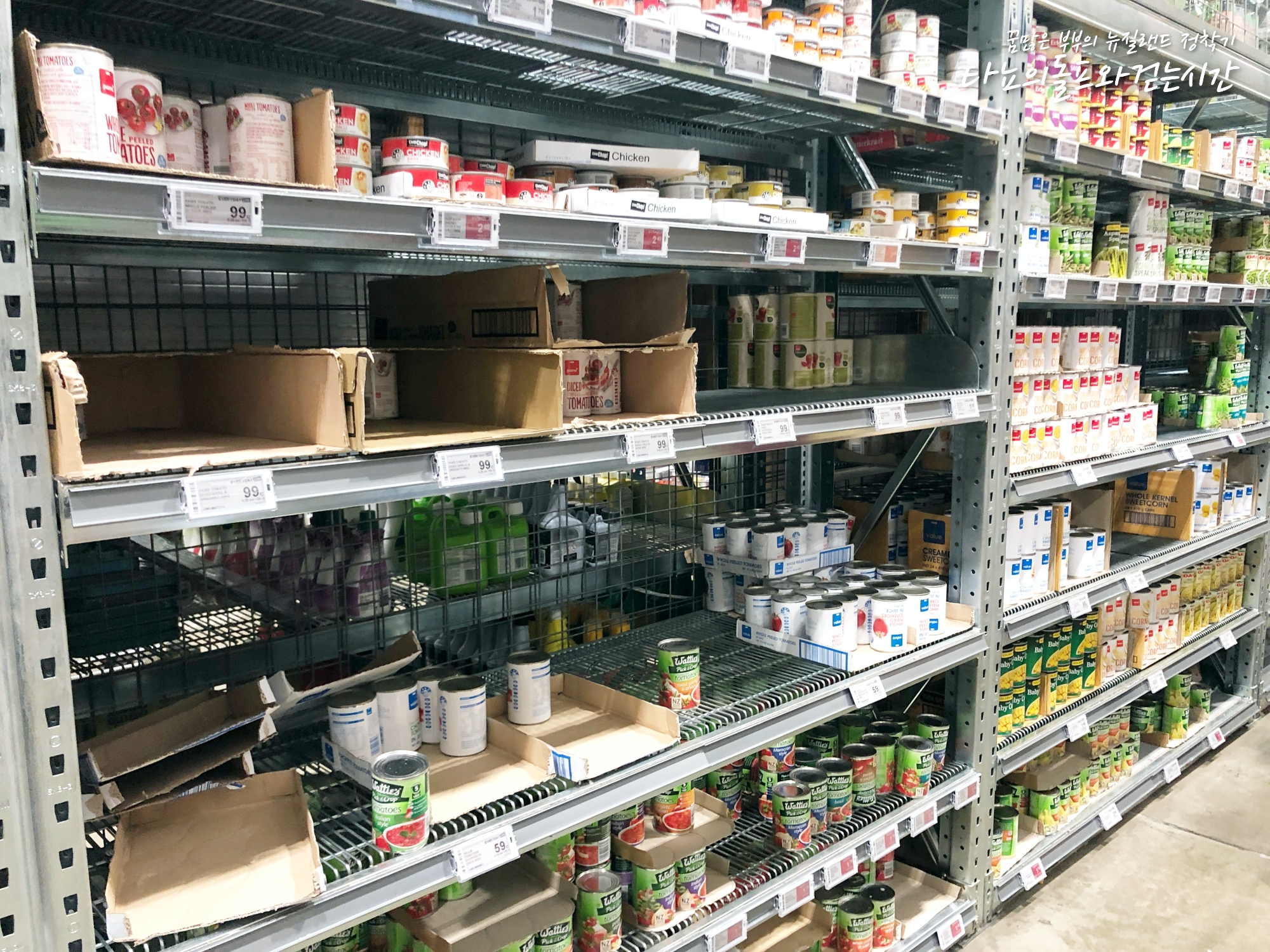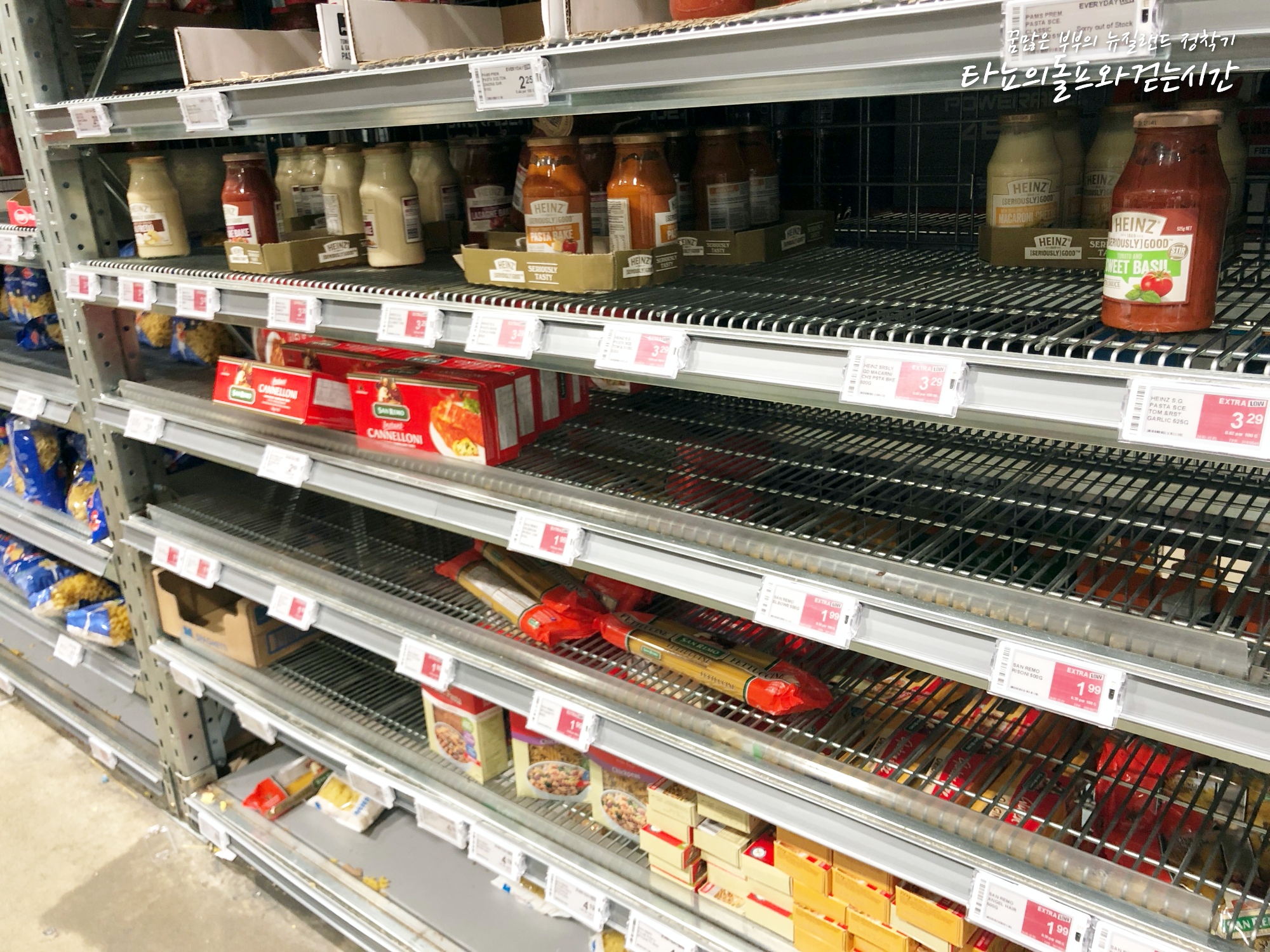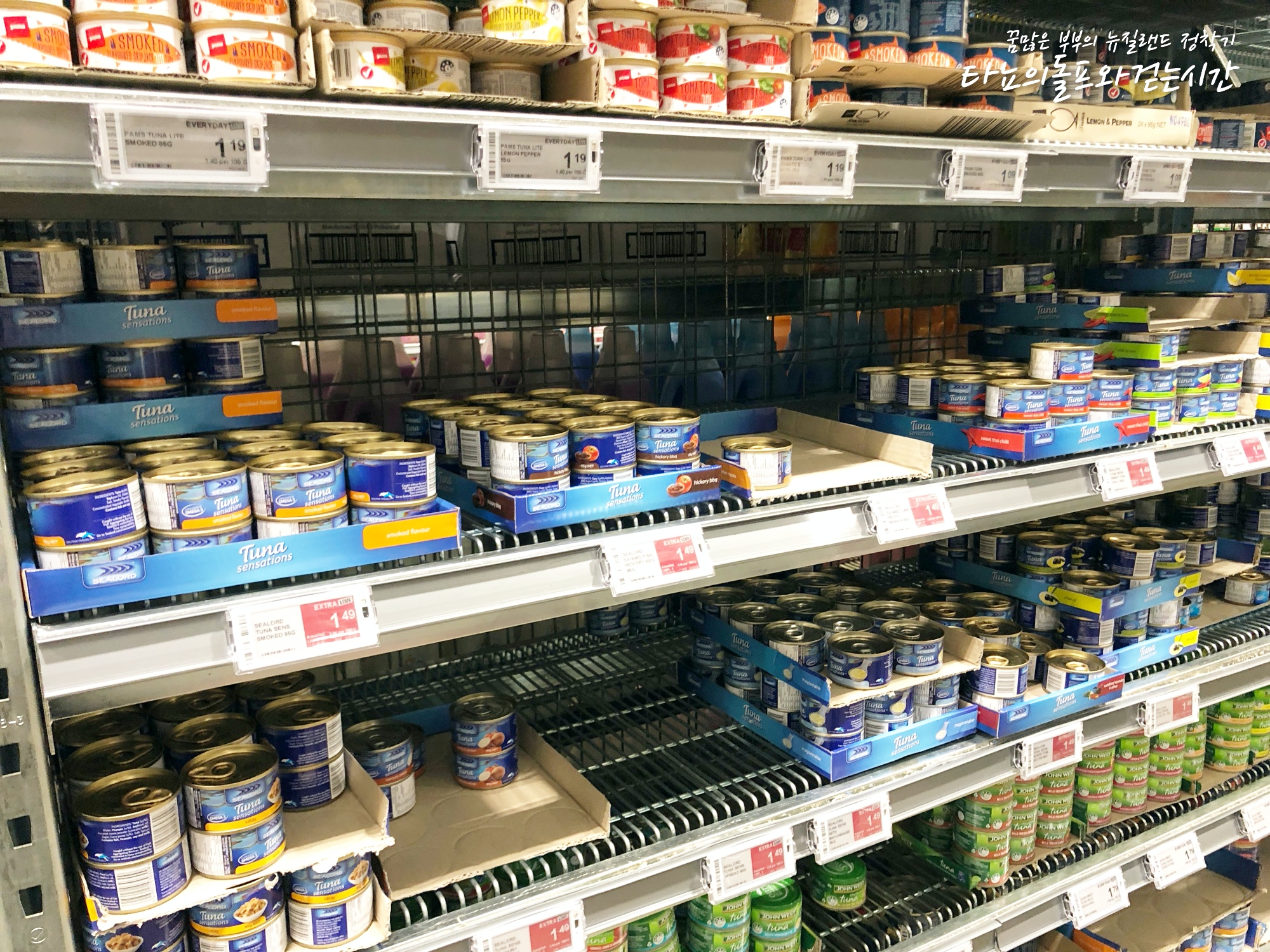 쌀이 똑 떨어져서 밥 먹고 장보러 갔었는데요. 대형마트 중에서는 가장 큰 규모와 가성비를 자랑하는 '파킨 세이브'는 바쁜 시간임에도 불구하고 생각보다 훨씬 조용했던 것 같습니다. 게다가 통조림 코너에서는 깜짝 놀랐답니다. 파킨 세이브는 한국에서 주부들이 코스트코 가는 것처럼 약간의 대량 구매가 이루어지는 곳이긴 하지만, 여태 4년이라는 시간을 이 곳에서 지내면서 통조림 코너가 저렇게 속이 보일 정도로 텅텅 비어 가는 모습은 처음 본 것 같습니다. 보통 꽉 차있기 마련인데...