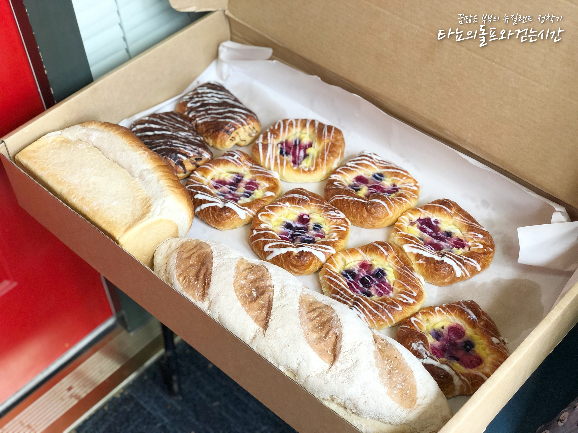 신랑이 주차를 하면서 기대에 부푼 멘트를 날렸습니다. 산타가 맞더군요. 기대 이상의 내용물을 확인한 돌프는 진심 기뻐했답니다. 우리집 빵돌이 광대 승천했지요. 빵은 워낙 넉넉해서 며칠 째 맛있게 잘 먹는 중입니다.
