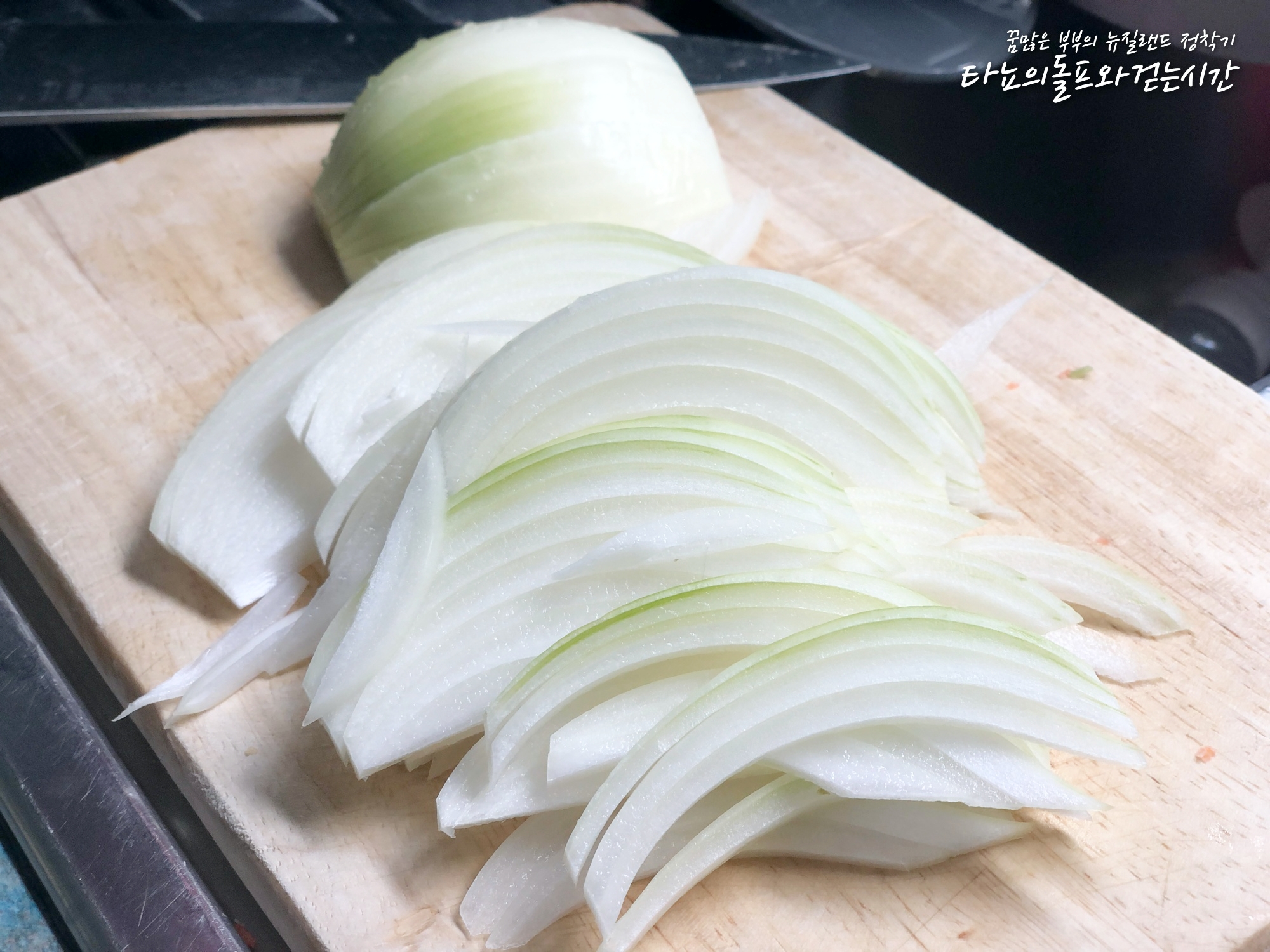 1. 양파는 얇게 채 썰고 파는 송송송 썰어줬어요.