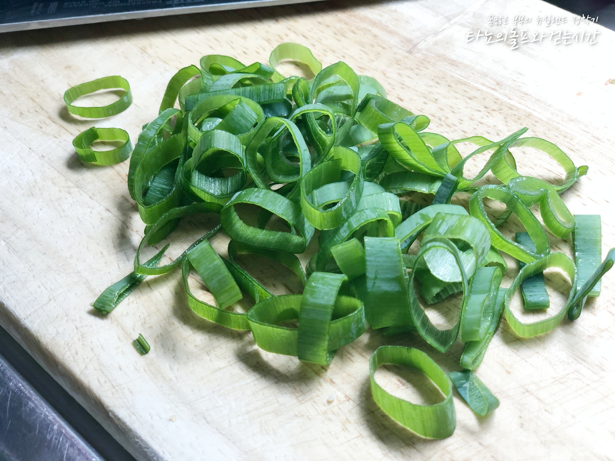 6. 송송 썰어 준비한 파를 넣어 섞어주세요.