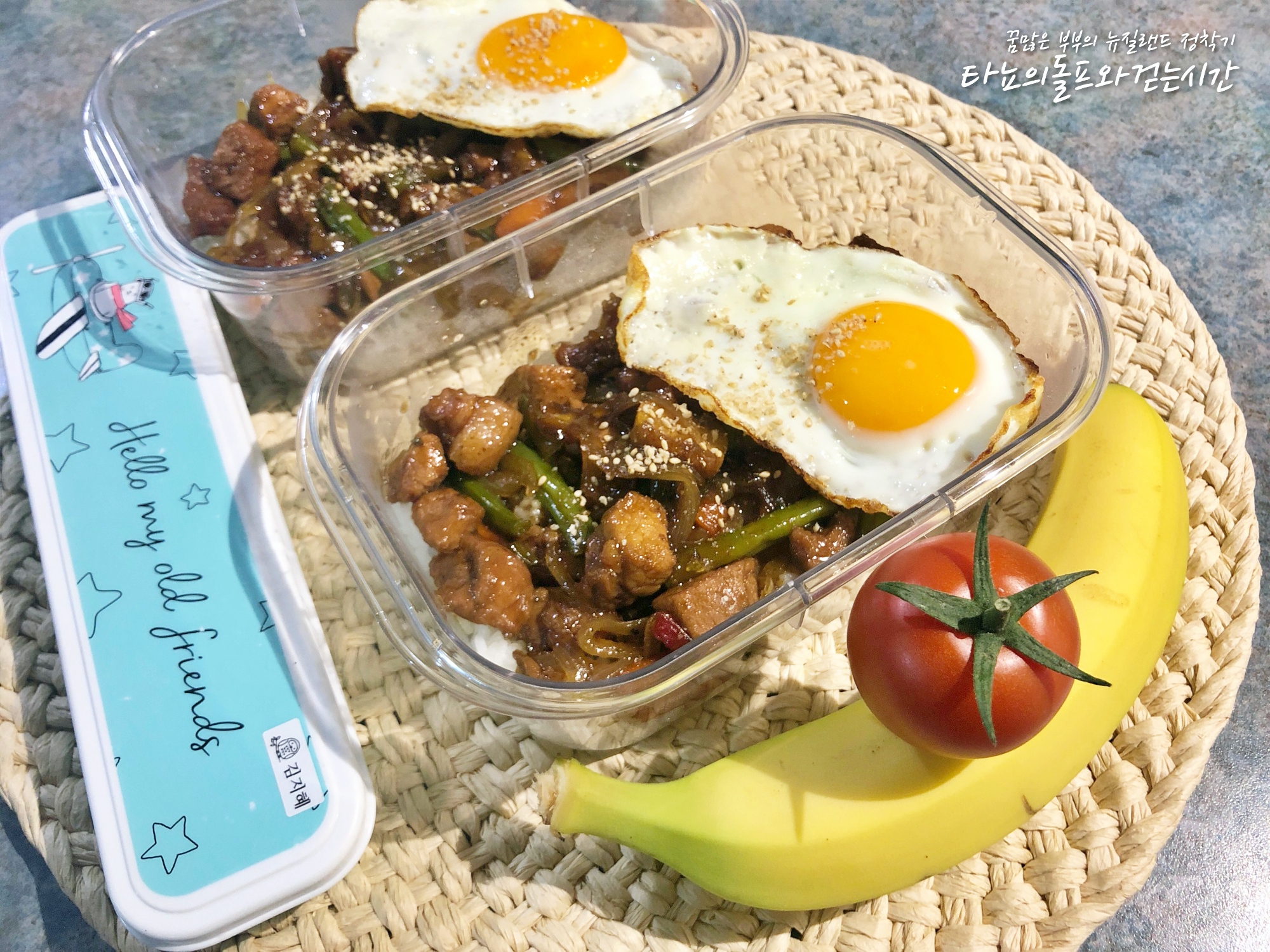 과거 한국에 살 때 '서가앤 쿡'에서 종종 사 먹던 돼지 등심 스테이크가 그리워서 만들어 본 등심스테이크 도시락입니다. 물론 도시락이라 편리함을 위해 고기는 잘라서 찹스테이크로 준비했지요. 냉동 모둠 야채와 양파 함께 넣어서 양념에 졸여서 준비했습니다. 달걀 프라이는 빠질 수 없죠. 바나나와 토마토는 간식!