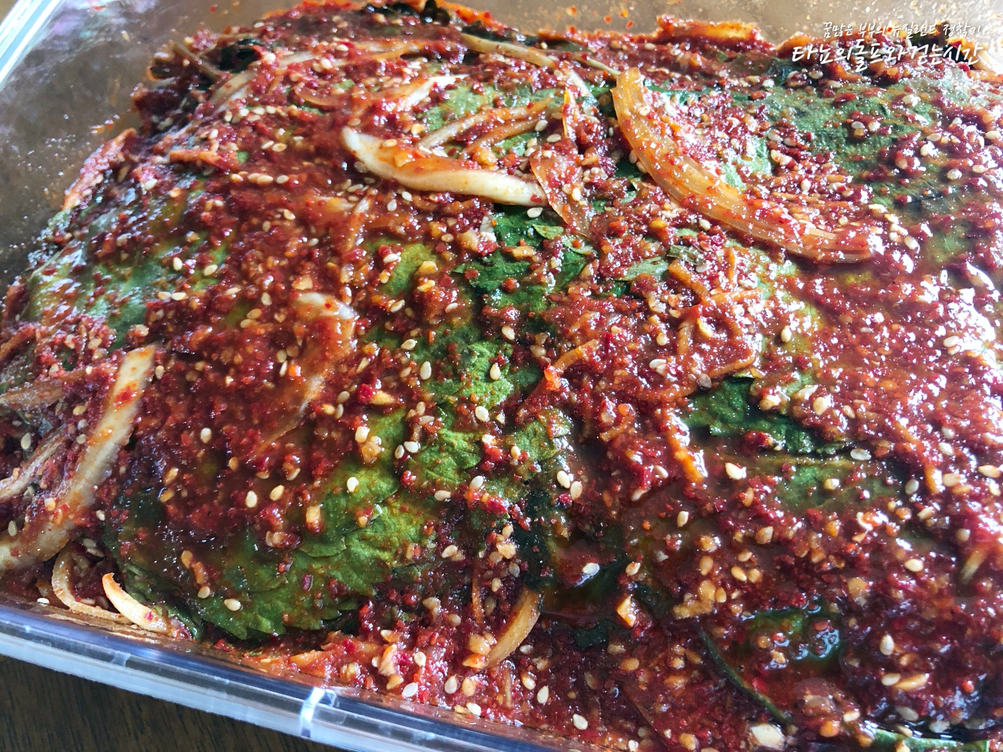 양념을 발라줄 때는 대충대충 올리셔도 됩니다. 어차피 절여지면서 자연스럽게 양념이 모두 스며들거든요. 양념이야 부족하면 더 만들면 되겠지만, 처음부터 너무 많이 올려서 나중에 부족한 일 없도록 조금씩 분배 잘해주세요. 양을 대충 봐가며 맞춰가시면 됩니다.