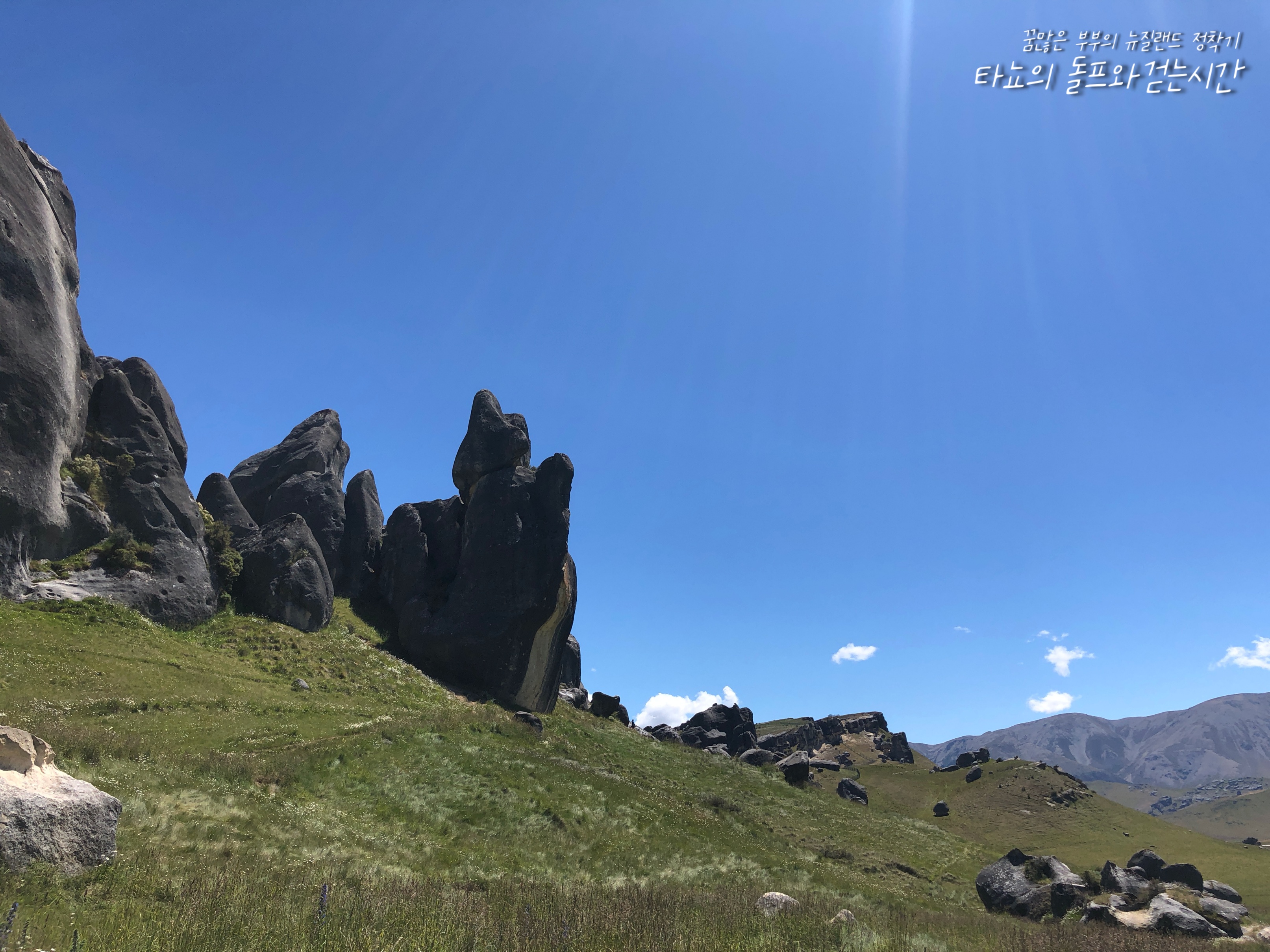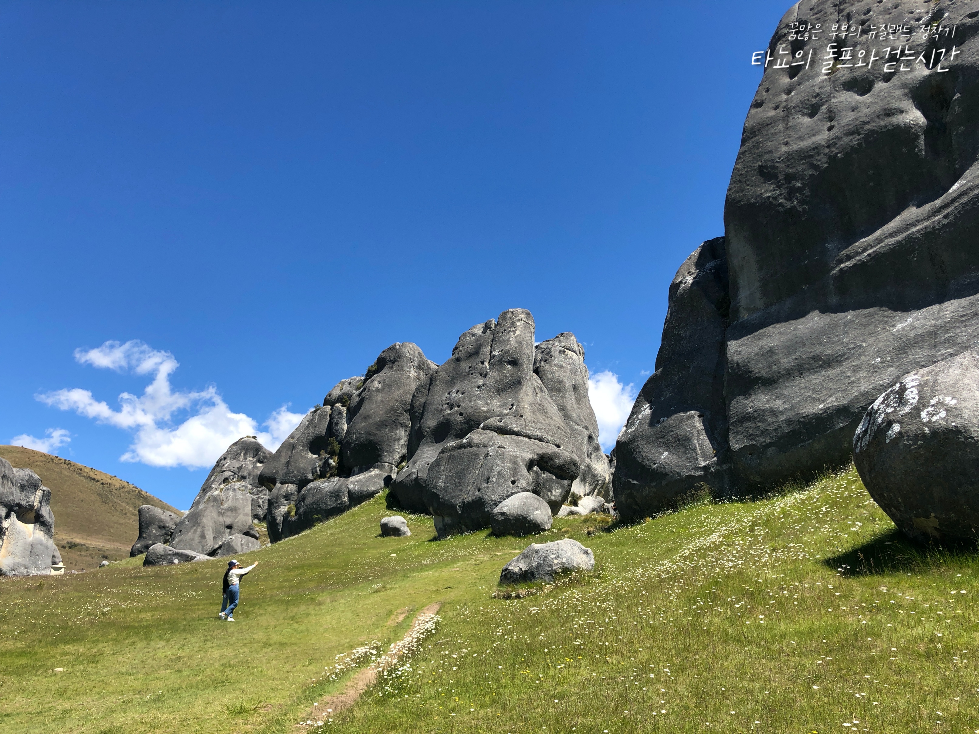 저는 뉴질랜드의 남섬에서 가장 큰 도시인 '크라이스트처치(Christchurch)'에 살고 있는 조이입니다. 오늘 제가 사진으로 소개할 나들이 장소는 크라이스트처치에서 자동차로 1시간 거리에 위치한 '캐슬힐(Castle Hill)'입니다. 보통 치치에서 아서스패스 국립공원이나 마운트 헛으로 이동하는 분들이 많은데요. 같은 경로에 있는 캐슬힐은 그냥 지나가는 분들이 많습니다. 하지만 진짜 아름다운 곳은 이곳이랍니다.