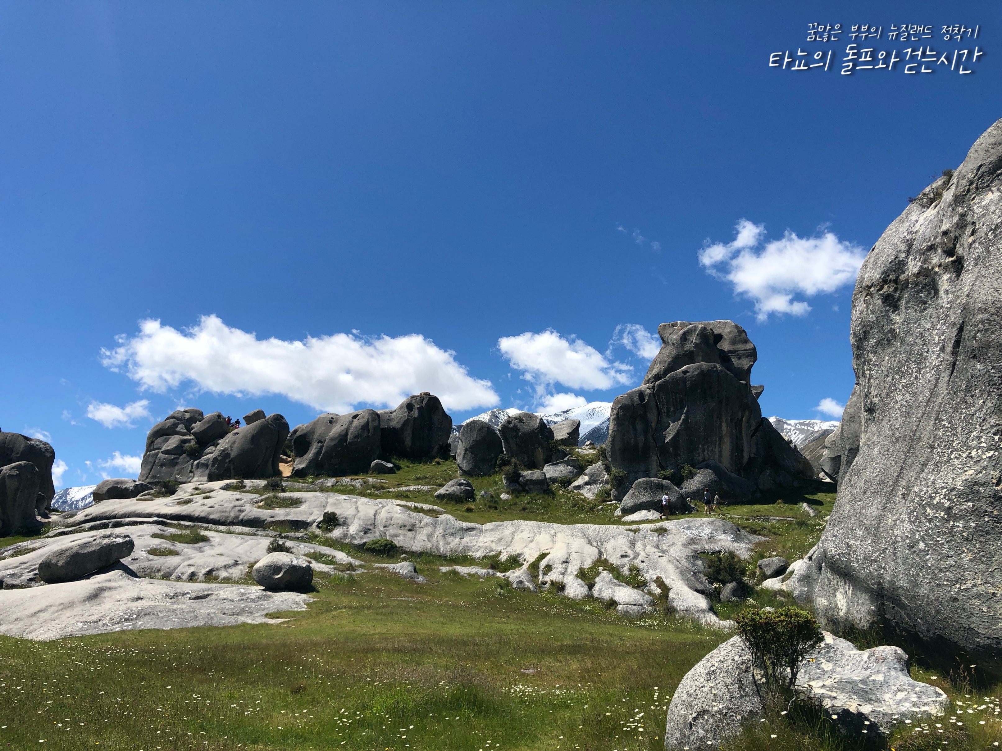 저는 뉴질랜드의 남섬에서 가장 큰 도시인 '크라이스트처치(Christchurch)'에 살고 있는 조이입니다. 오늘 제가 사진으로 소개할 나들이 장소는 크라이스트처치에서 자동차로 1시간 거리에 위치한 '캐슬힐(Castle Hill)'입니다. 보통 치치에서 아서스패스 국립공원이나 마운트 헛으로 이동하는 분들이 많은데요. 같은 경로에 있는 캐슬힐은 그냥 지나가는 분들이 많습니다. 하지만 진짜 아름다운 곳은 이곳이랍니다.
