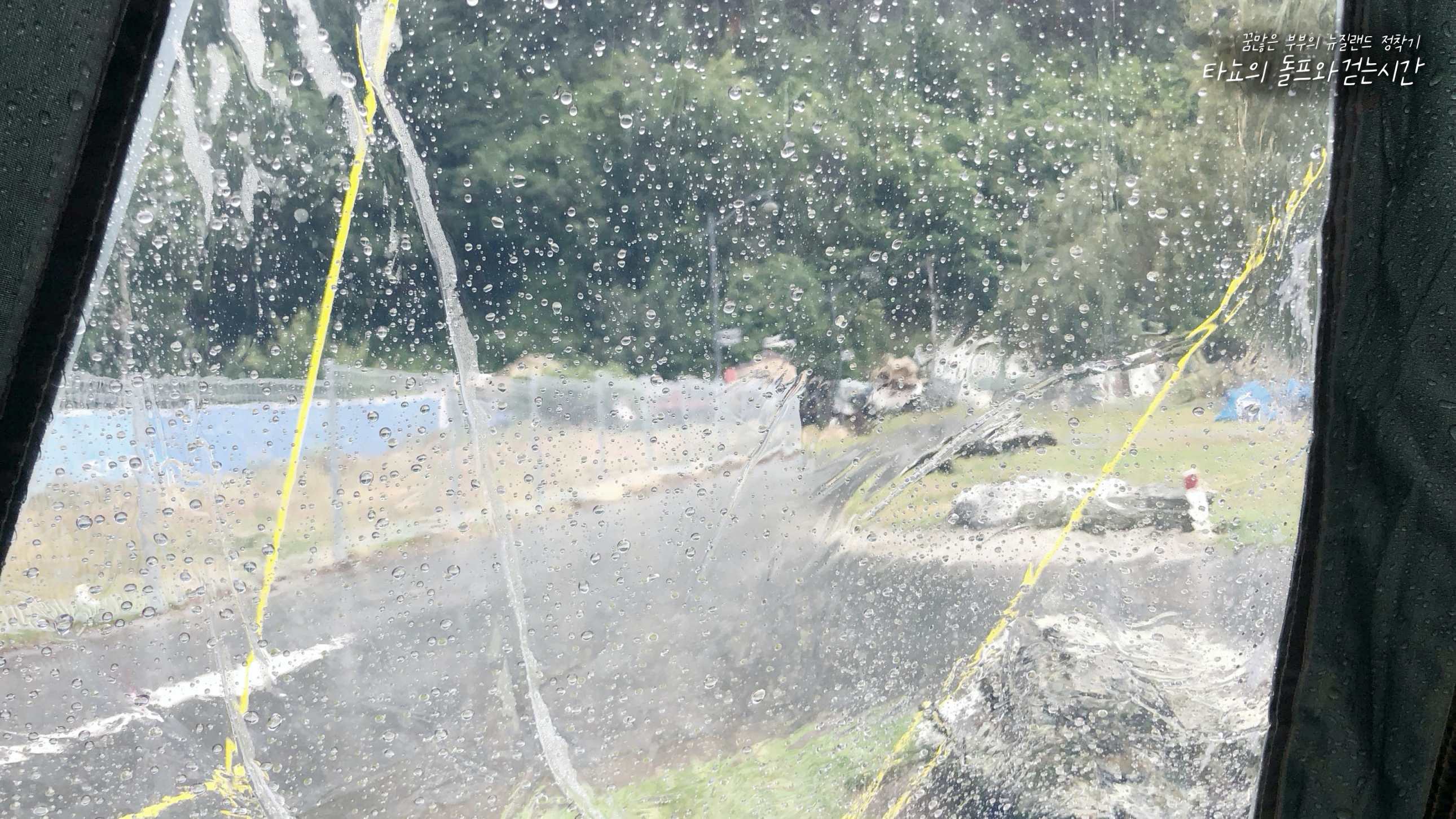새벽부터 비가 오기 시작했는데 오전 내내 아주 꾸준하게 쏟아졌습니다. 뉴질랜드에서는 보통 맞고 다녀도 괜찮을 정도의 가랑비가 자주 내리는 편인데, 이번에는 상당히 굵은 빗방울이 세차게 떨어졌습니다. 텐트에서 듣는 빗소리는 정말 듣기 좋았던 것 같습니다. 언제 들어도 참 좋은 소리라고 생각합니다.