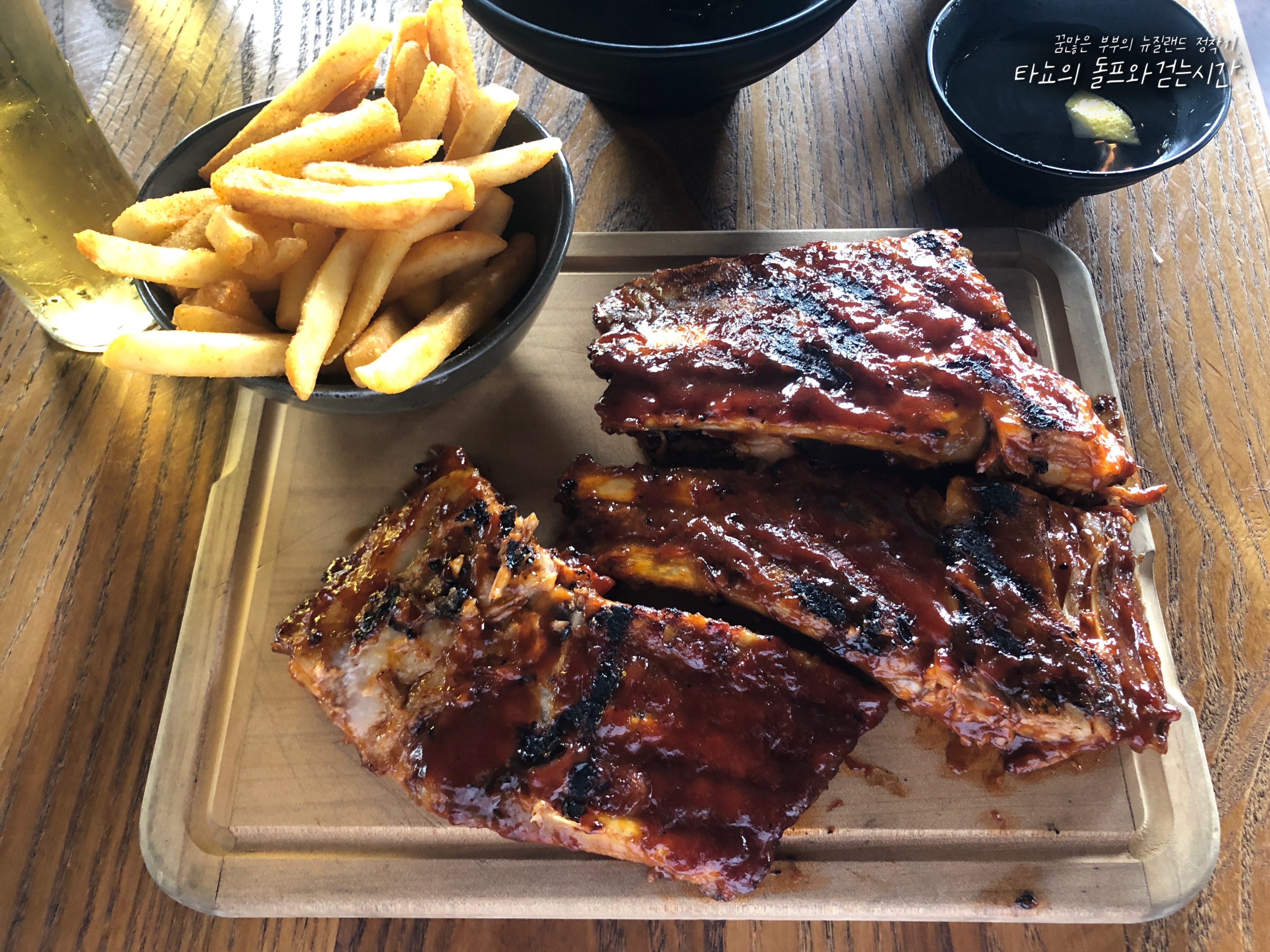 오미, 정말 맛있었어요. 사진으로는 그닥 커 보이는 느낌이 안 나는데, 실제로 정말 굉장히 엄청 컸습니다. 제가 혼자 다 먹기 힘들 정도로 많았어요. 남자 어른이 먹기에는 아마 딱 좋은 양이 아닐까 싶은데요. 칩스까지 있으니 배가 더 든든했습니다. 립을 먹다 보면 손이 엉망이 되는데요. ^^;; 레몬 물을 작은 그릇에 함께 주니까 손을 씻어가며 드시면 됩니다. 다음에 또 오고 싶은 그런 맛! 다들 왜 오는지 알겠는 그런 맛!