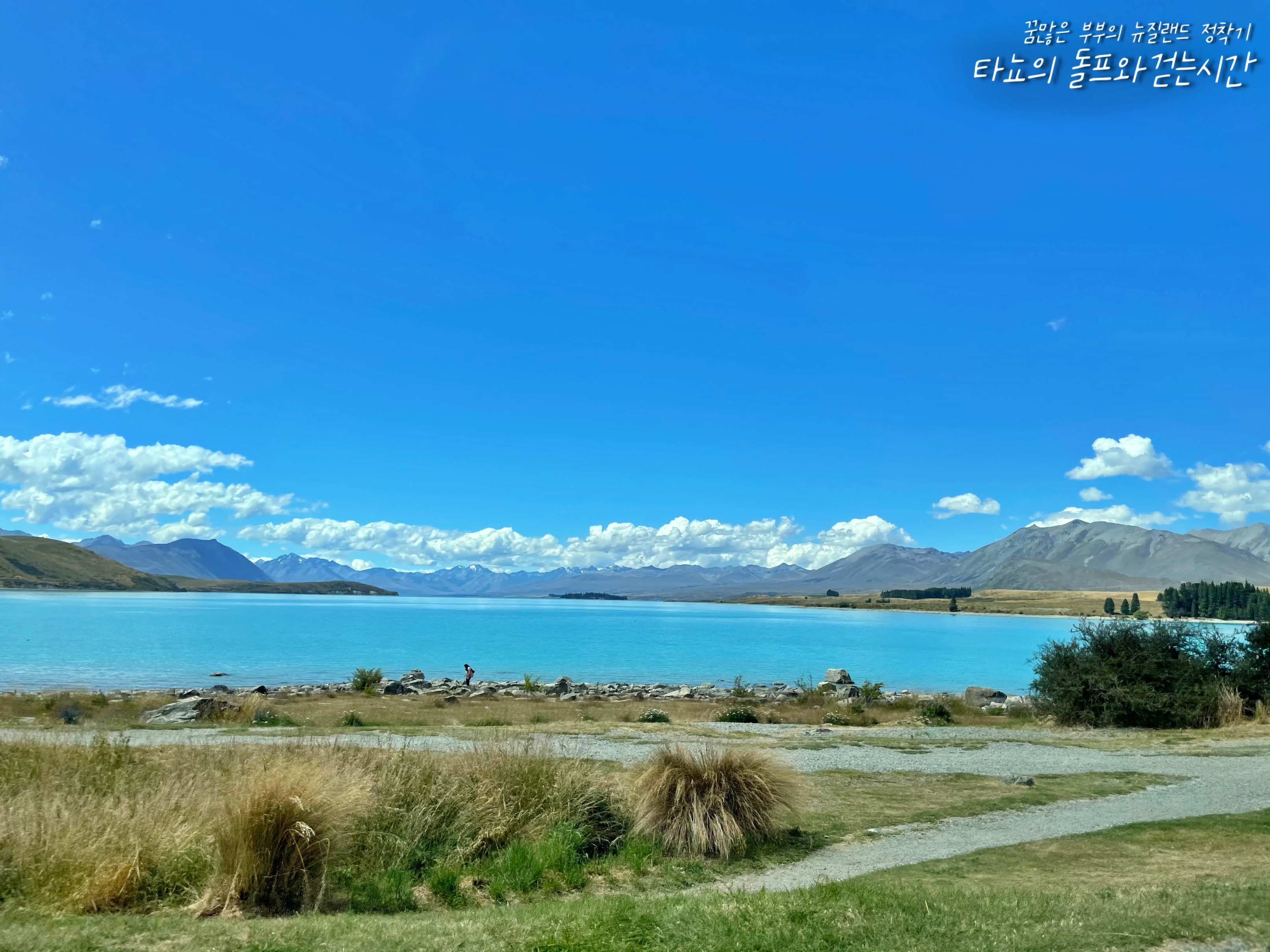 잉, 진짜 날씨 좋았네요. 테카포 물빛이 이렇게 아름다운 색감을 띄는 날을 매번 만날 수는 없거든요. 고산지대라 날씨가 매번 참 다른데요. 정말 예뻤어요. 한여름이라 루핀도 없었지만, 물빛만으로 그냥 완벽했습니다.