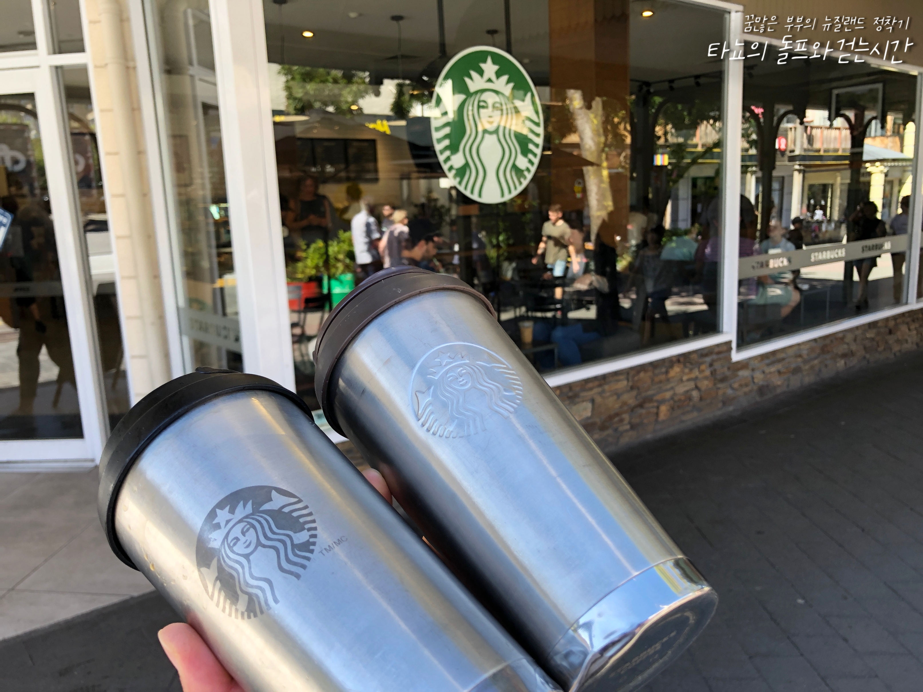 저희는 미리 준비한 각자의 텀블러에 커피를 받았습니다. 오래 전 스타벅스에서 구입했던 스텐 텀블러인데요. 스타벅스가 텀블러는 참 잘 만드는 것 같아요. 벌써 7년 가까이 사용 중인데(갈색 뚜껑은 5년째) 여전히 보냉 보온이 확실합니다. 입구도 큼직해서 손이 들어가다 보니 씻기도 참 좋고요. 세월의 흔적으로 여기저기 조금씩 찌그러진 곳이 있어서 새로운 텀블러를 매번 눈여겨보고 있는데요. 가장 기본형인 이런 류의 텀블러가 잘 안 보이네요.