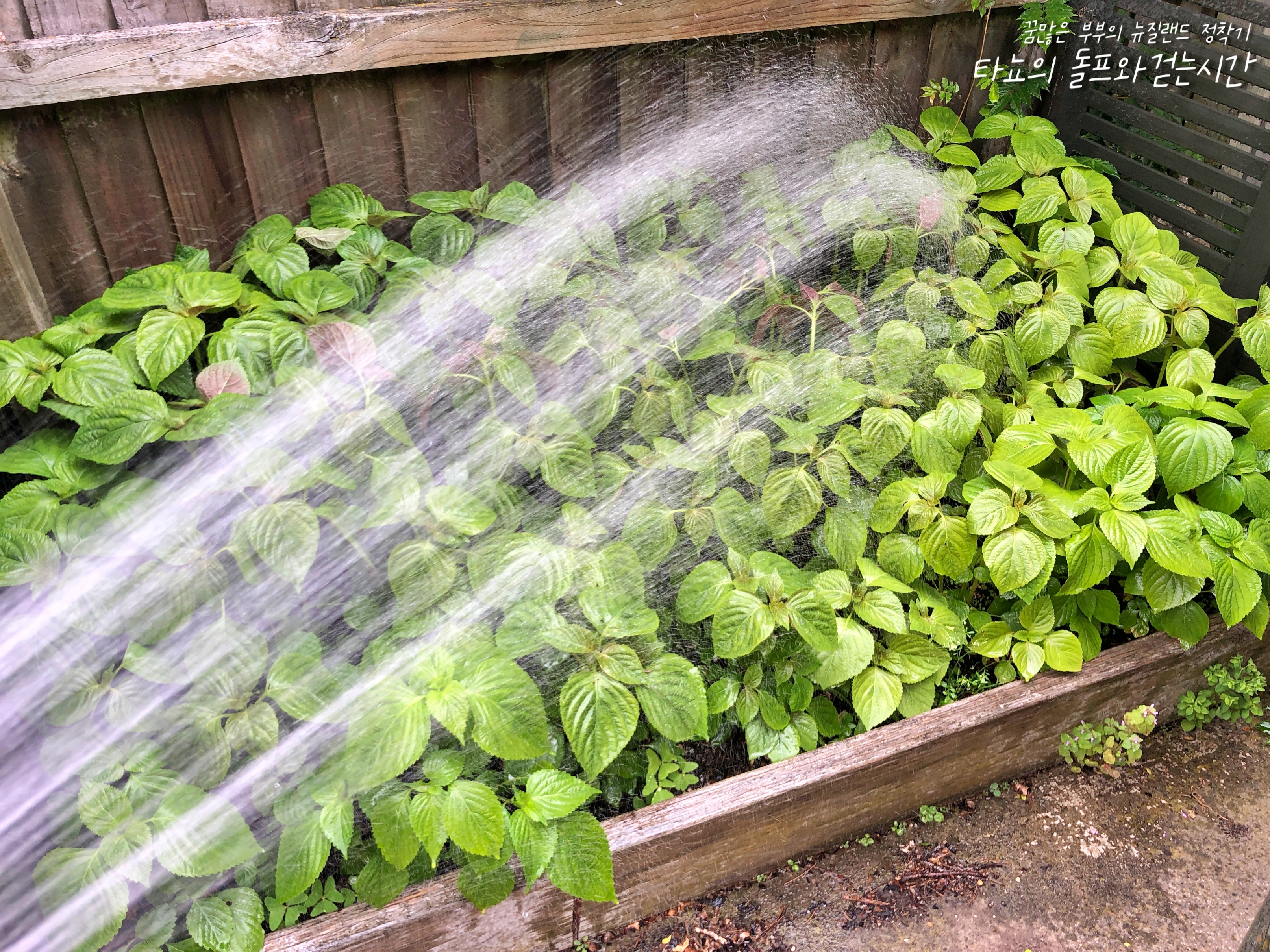 당시 일주일 동안 집을 비웠기 때문에 가장 걱정스러웠던 것은 가든에 있는 제 농작물이었어요. 깻잎 밭이 가장 크고 중요한 텃밭인데요. 다행히 주중에 비가 내렸던지라 크게 마르지 않았더라고요. 집에 오자마자 물부터 듬뿍 줬습니다. 저 깻잎으로 참 잘 먹었던 것 같아요. 지금은 깻잎이 나지 않는 계절이라 깻잎 사진만 봐도 깻잎이 먹고 싶어 지네요.
