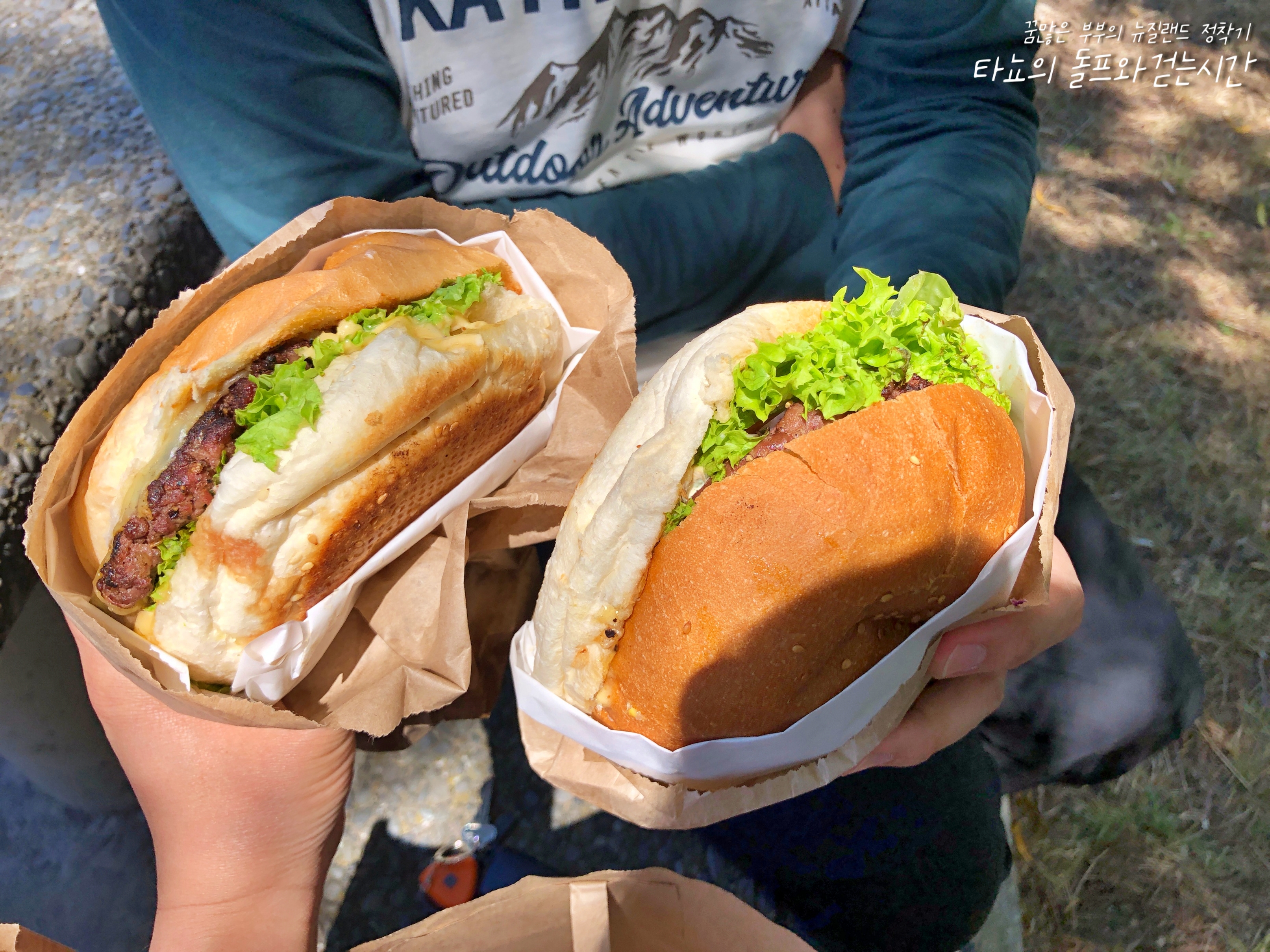 퀸스타운에서 즐거운 일주일간의 캠핑을 마치고 집으로 돌아가던 날 아침, 홀리데이 파크 체크아웃을 한 다음 잠시 퍼그 버거를 사러 갔습니다. 지난 일주일간 매일 먹었지만, 절대 질리지 않죠. 매일 너무 맛있게 먹었고 떠나는 날에도 아쉬운 마음이 커서 또 사러 갔습니다. 치치까지 가려면 6시간에서 7시간을 가야 하는데 중간에 먹을 밥이 필요하기도 했고 이동 중에 간편하게 먹기에 퍼그 버거가 제격이라고 생각했죠.