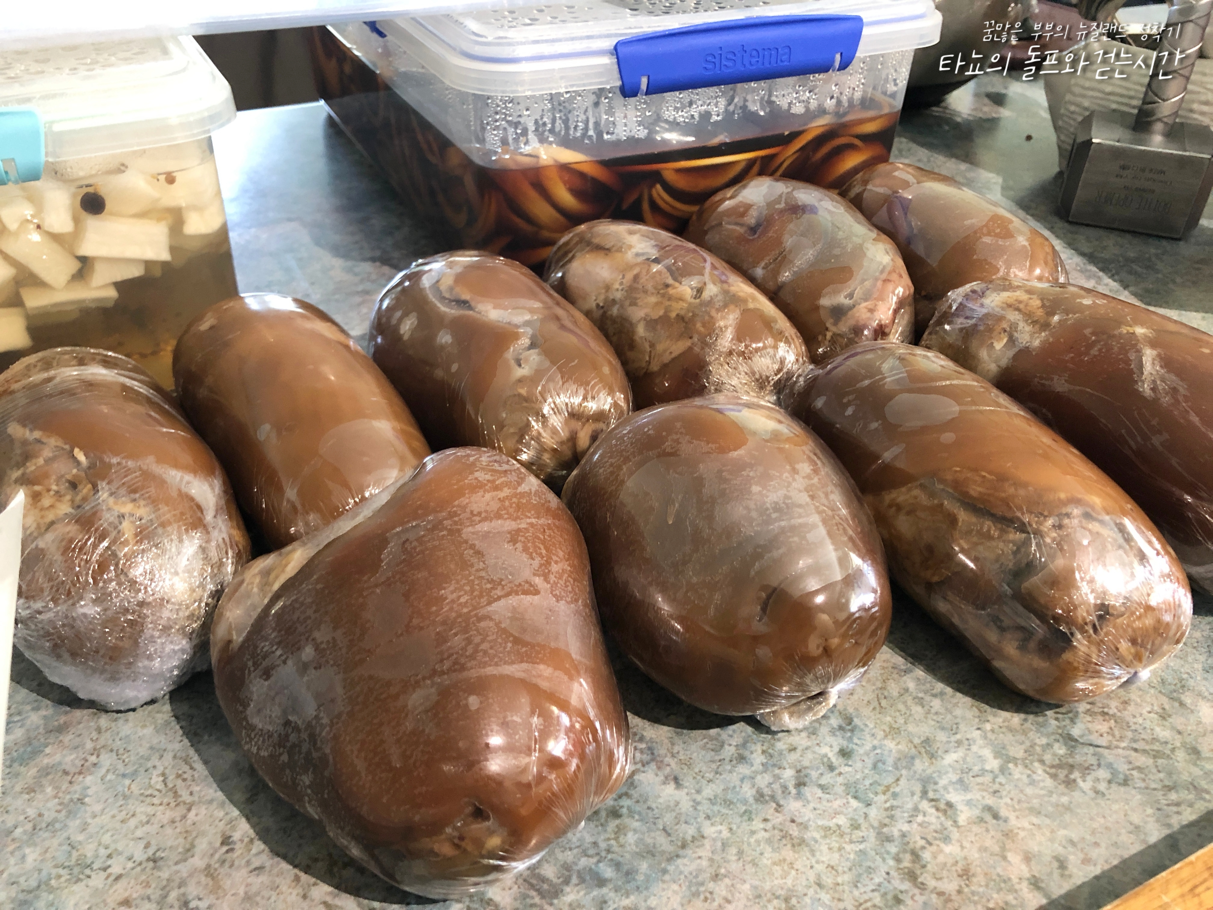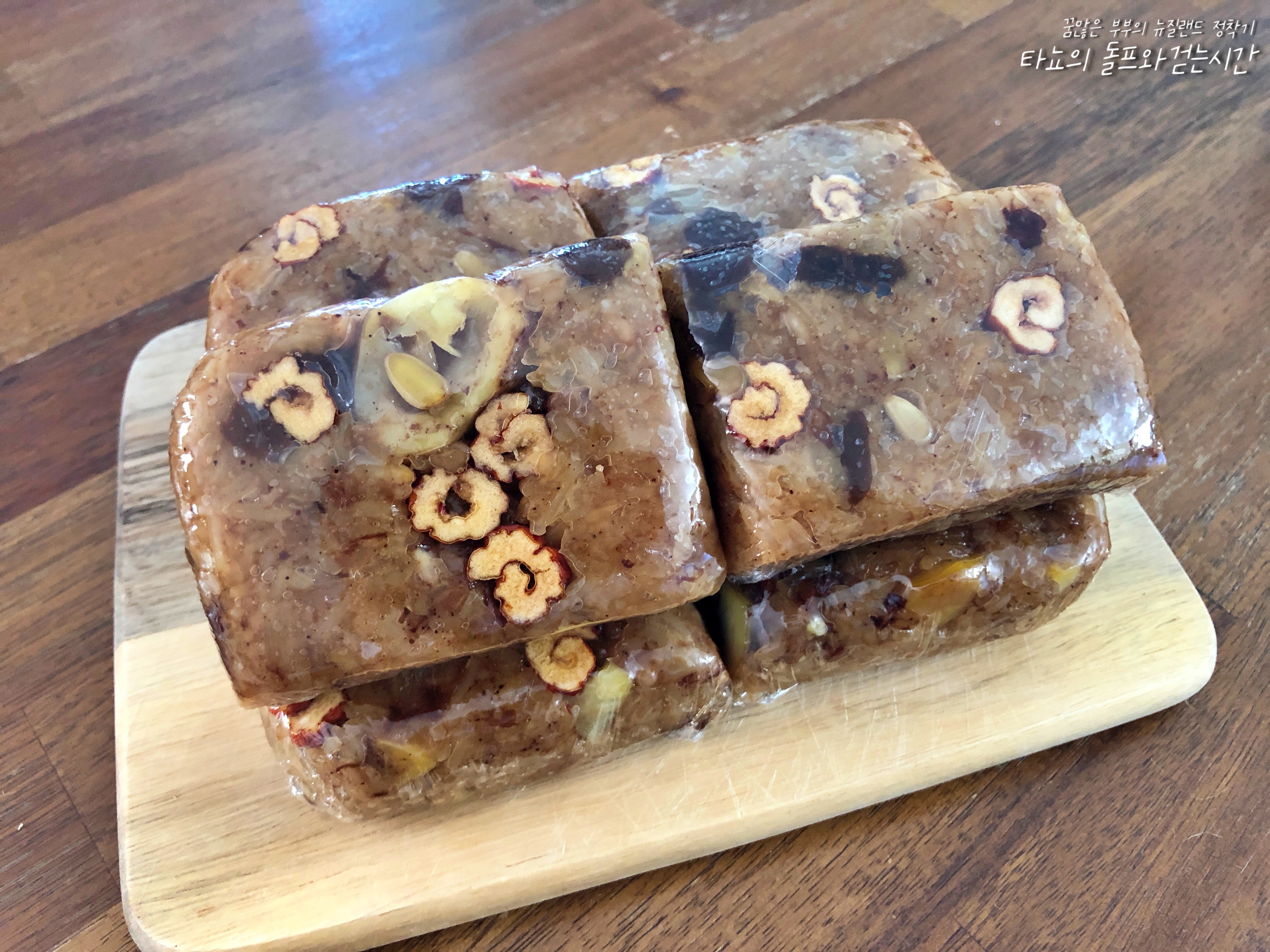 쫄깃한 식감과 향긋한 계피향이 좋은 약밥도 준비했어요. 약밥 또한 뉴질랜드에서는 흔하게 먹을 수 없는 귀한 음식이죠. 이런 음식들이 보통 바자회 같은 행사의 반찬 코너에서 많이 판매되는 것 같아요. 밤, 대추, 땅콩, 잣, 호두, 찹쌀, 말린 자두 등을 넣어 만들었습니다. *약밥 만들기