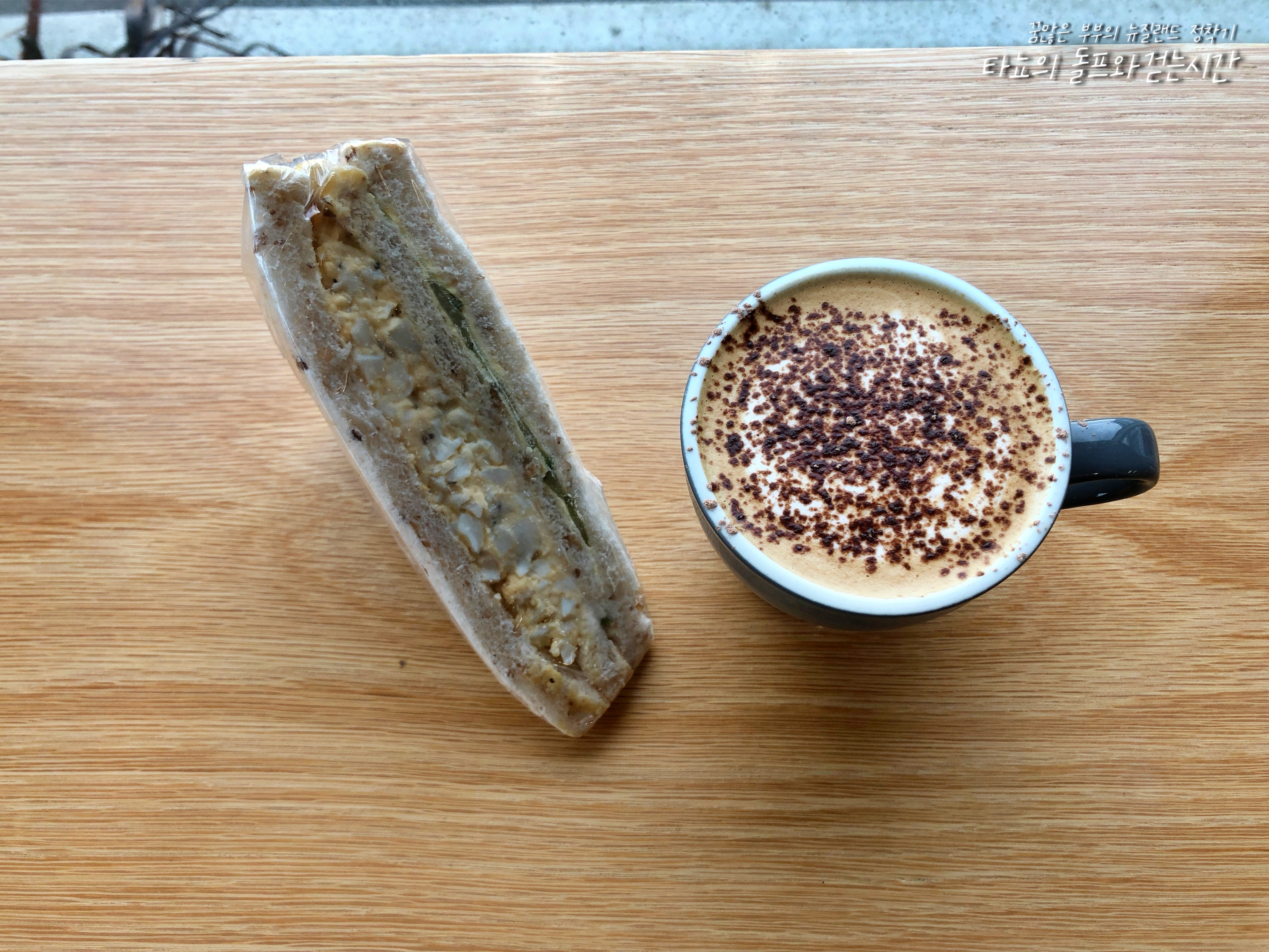 그 다음날 브레이크에 먹은 에그 클럽 샌드위치와 초콜릿 가루 얹은 카푸치노입니다. 브레이크에 안 먹어야 살이 빠질 텐데, 워낙 잘 주셔서 잘 먹다 보니 늘 든든하게 일을 하고 있네요.