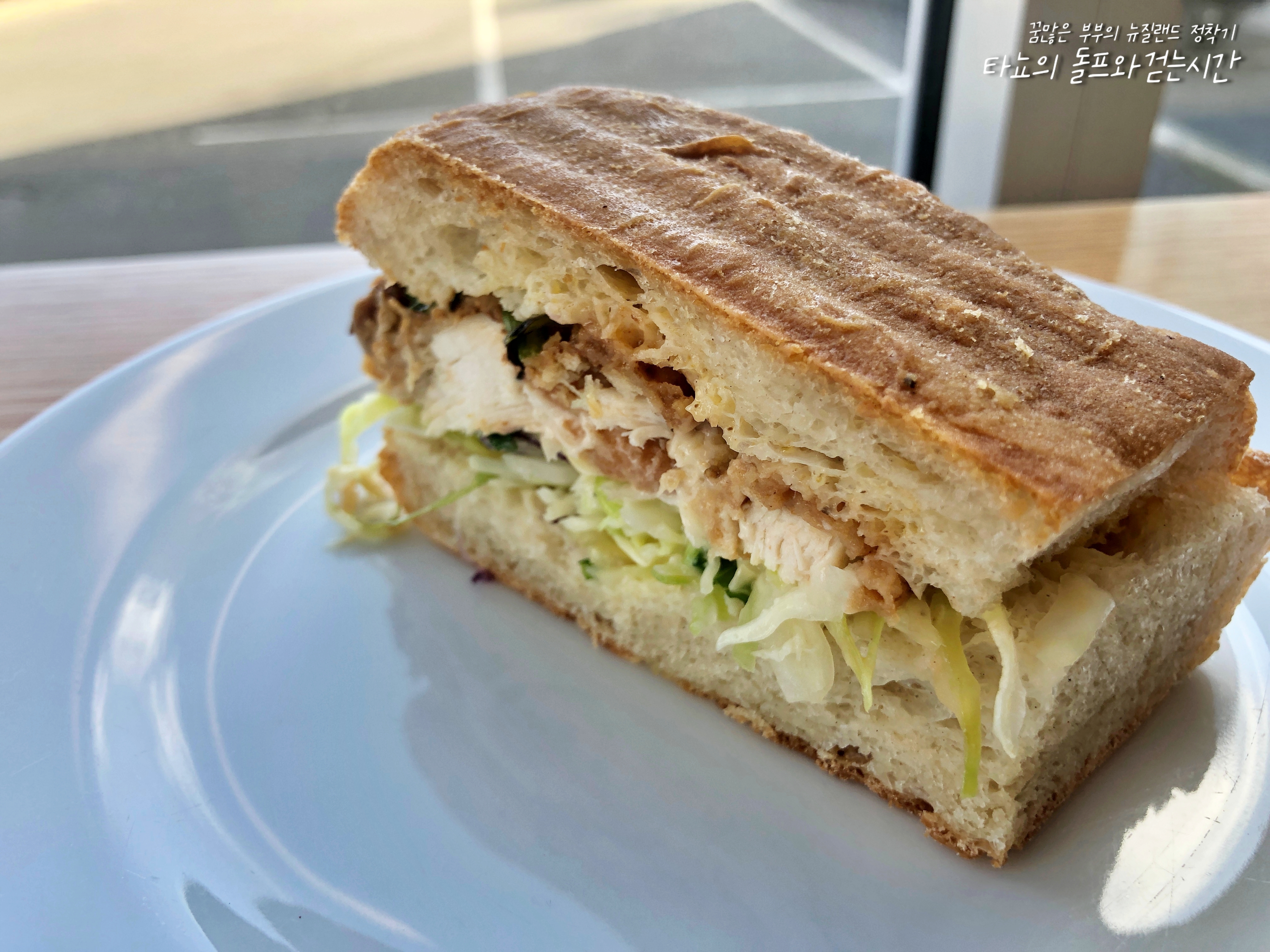 금요일 브레이크에 먹은 크리스피 치킨 치아바타 롤입니다. 크기가 워낙 커서 구운 다음 잘라서 사장님과 반씩 나눠먹었어요. 바삭하게 튀긴 치킨과 채 썬 양배추, 돈가스 소스와 마요네즈가 듬뿍 들어가서 맛이 아주 좋았어요. 어릴 때 경양식 돈가스 전문점에서 먹었던 소스에 푹 절여졌지만 맛있었던 돈가스 맛이 나더라고요. 아마도 소스 효과겠죠?