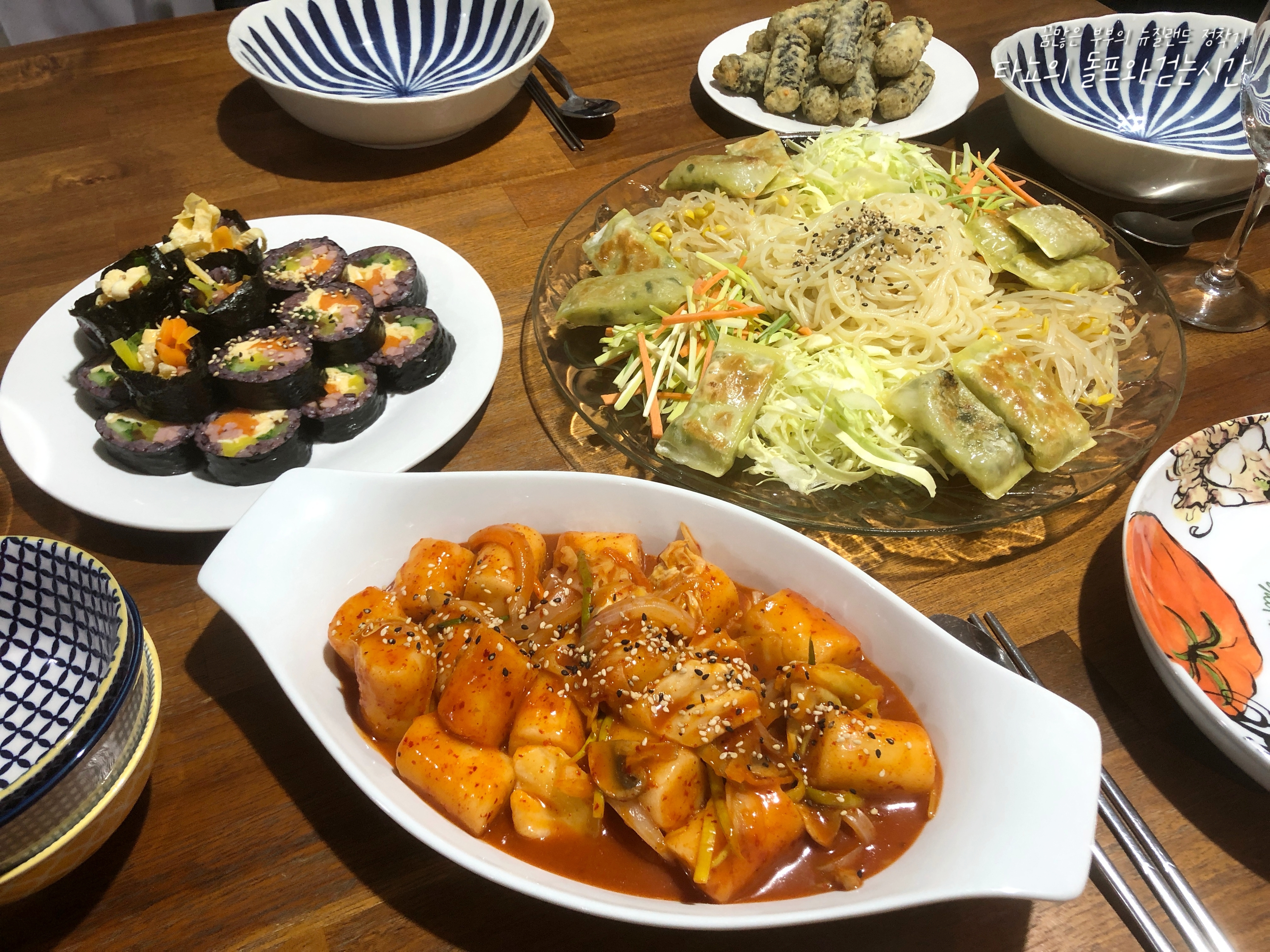 대략 이런 대화를 하며 저희는 메뉴를 선정했습니다. 그렇게 준비한 메뉴는 분식 만찬인데요. 떡볶이를 메인으로 잡고 김밥, 쫄면, 비빔만두, 김말이, 어묵탕이 선정되었습니다. 분식으로 무려 6가지 메뉴를 준비하는 것인데요. 외국인 친구를 초대해놓고 허접하게 대접하면 뭔가... 한국을 허접하게 보여주는 꼴이 될 것만 같은 생각에 이왕 하는 거 제대로 준비하려고 노력했답니다.