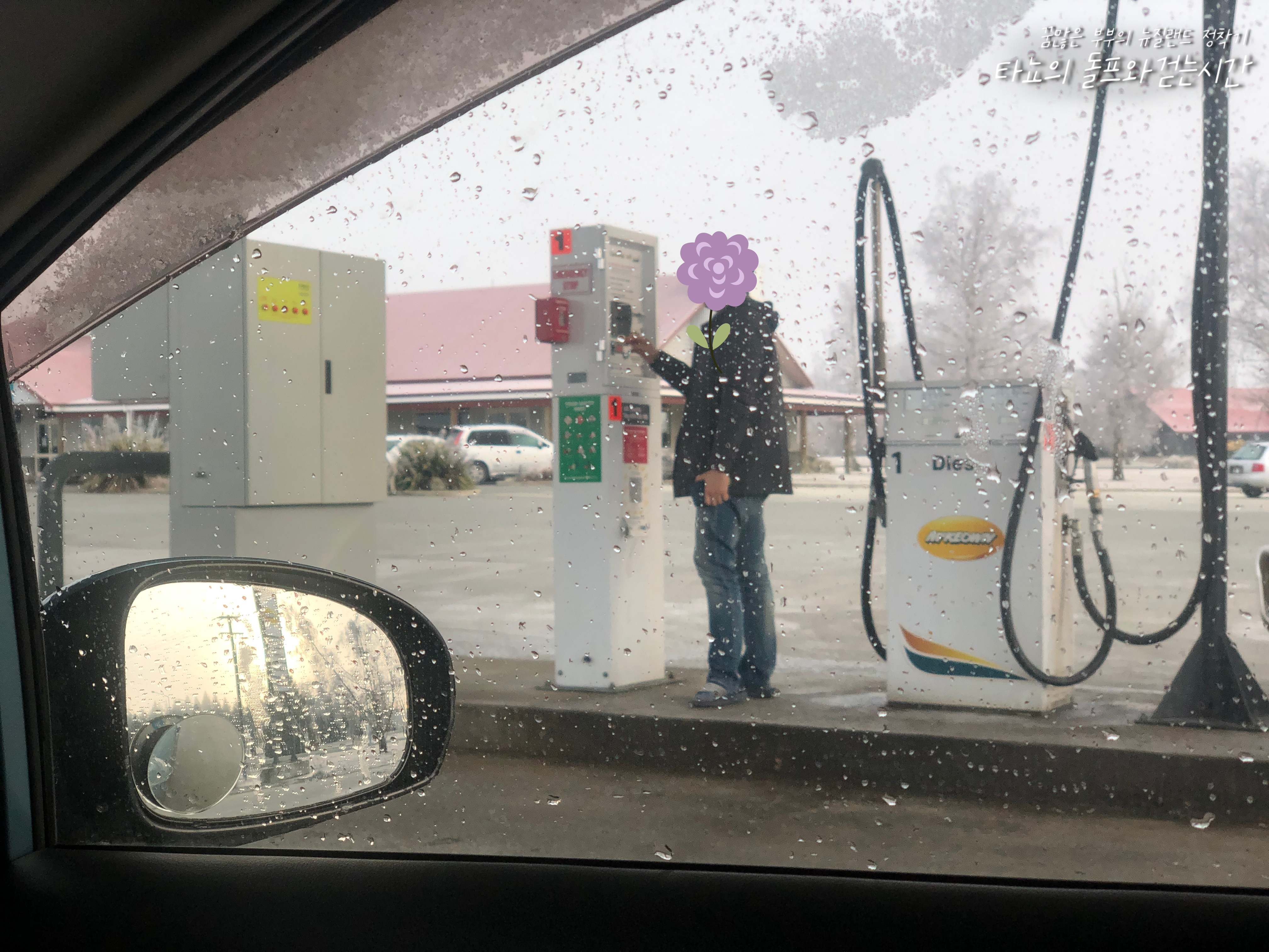 아침 일찍 크라이스트처치로 출발했습니다. 늦어도 오후 1시까지는 도착해야 했기 때문에 오전 8시에 출발했어요. 중간에 페얼리에 가면 페얼리 베이크하우스에 꼭 들러서 브런치를 먹어야 하기 때문에 이 시간의 출발은 굉장히 중요했습니다. 먼저 동네 주유소에서 기름을 가득 채웠어요.