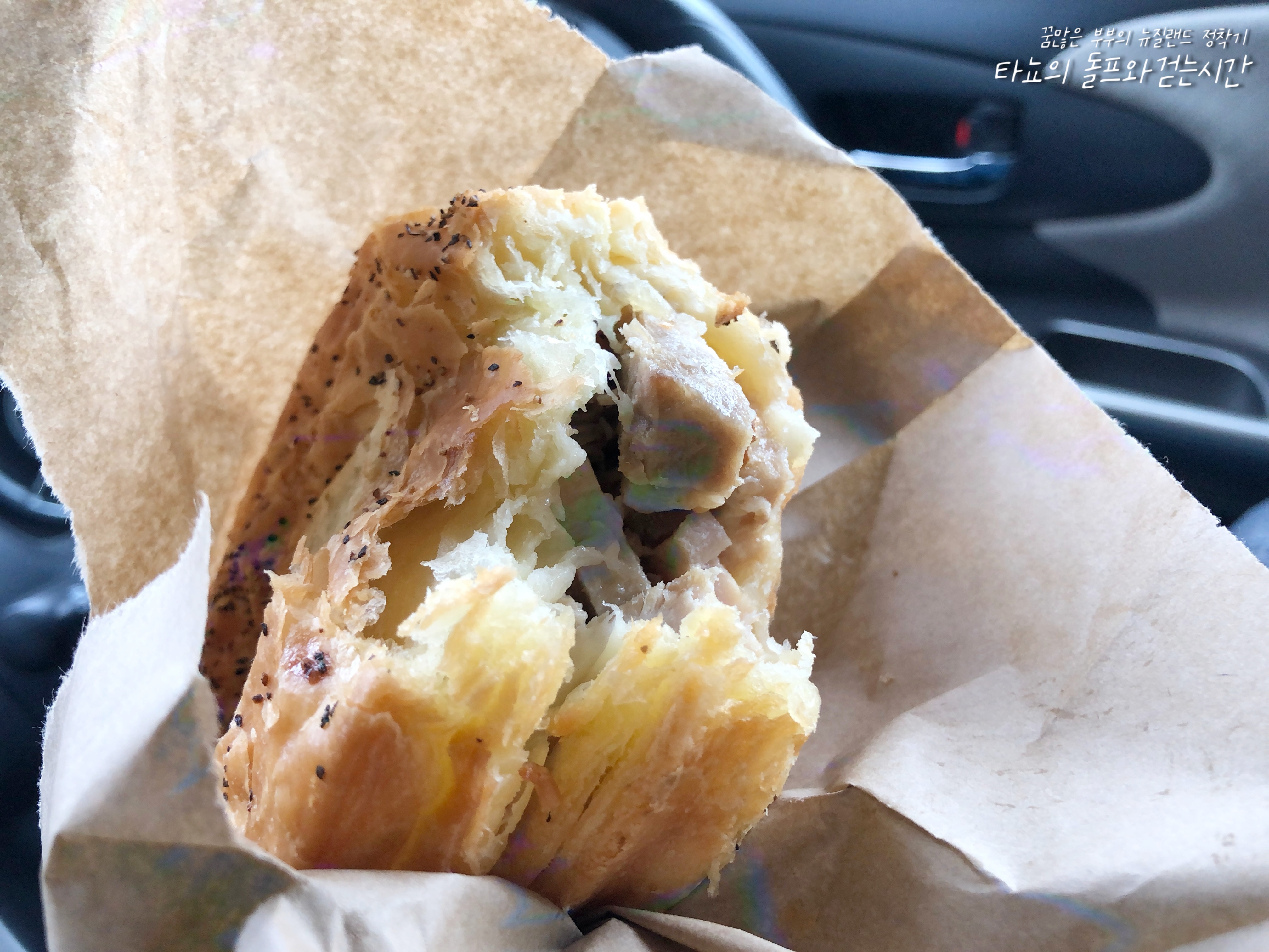 테이블이 만석이라 저희는 포장했습니다. 어차피 여긴 자리가 있을 때도 너무 사람이 많아서 보통 포장해서 밖에서 먹는 편이긴 합니다. 이날은 그래도 둘 만의 데이트라서 테이블에 앉고 싶은 마음이 약간 있었는데요. 자리가 없으니... 포장해서 차에서 편하게 먹었습니다. 이 집 잘 나가더니 정말 돈을 많이 벌긴 벌었나 봅니다. 이제 그들만의 포장봉투를 만들었네요. 로고도 이쁘게 만들고! 뉴질랜드에서는 이런 커스텀 제품이 진짜 비싸거든요. 한국에서는 일회용품 맞추는 게 그리 비싸지 않지만, 모든 것이 수입되는 섬나라 뉴질랜드에서는 완전 돈입니다.
