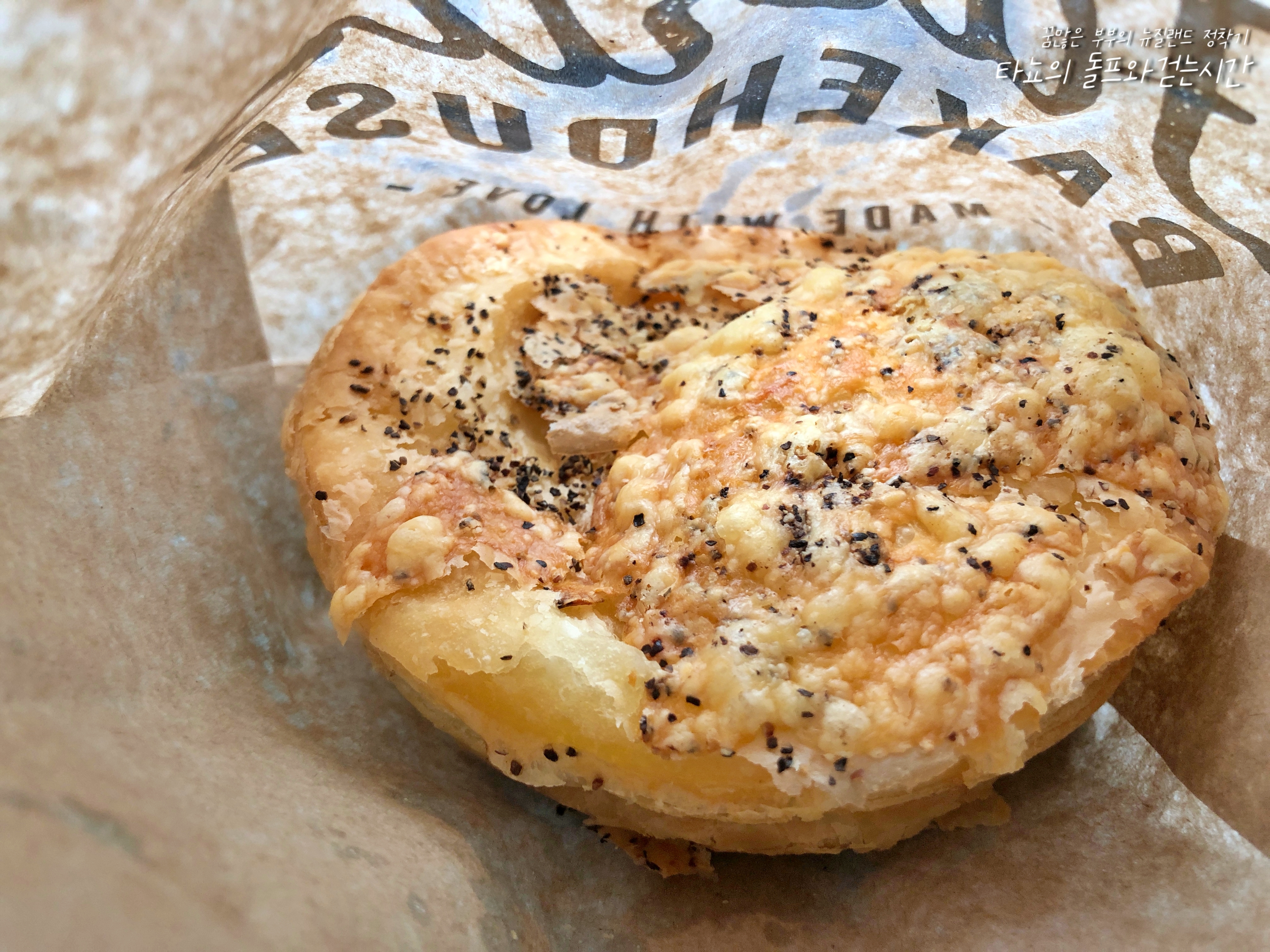 테이블이 만석이라 저희는 포장했습니다. 어차피 여긴 자리가 있을 때도 너무 사람이 많아서 보통 포장해서 밖에서 먹는 편이긴 합니다. 이날은 그래도 둘 만의 데이트라서 테이블에 앉고 싶은 마음이 약간 있었는데요. 자리가 없으니... 포장해서 차에서 편하게 먹었습니다. 이 집 잘 나가더니 정말 돈을 많이 벌긴 벌었나 봅니다. 이제 그들만의 포장봉투를 만들었네요. 로고도 이쁘게 만들고! 뉴질랜드에서는 이런 커스텀 제품이 진짜 비싸거든요. 한국에서는 일회용품 맞추는 게 그리 비싸지 않지만, 모든 것이 수입되는 섬나라 뉴질랜드에서는 완전 돈입니다.