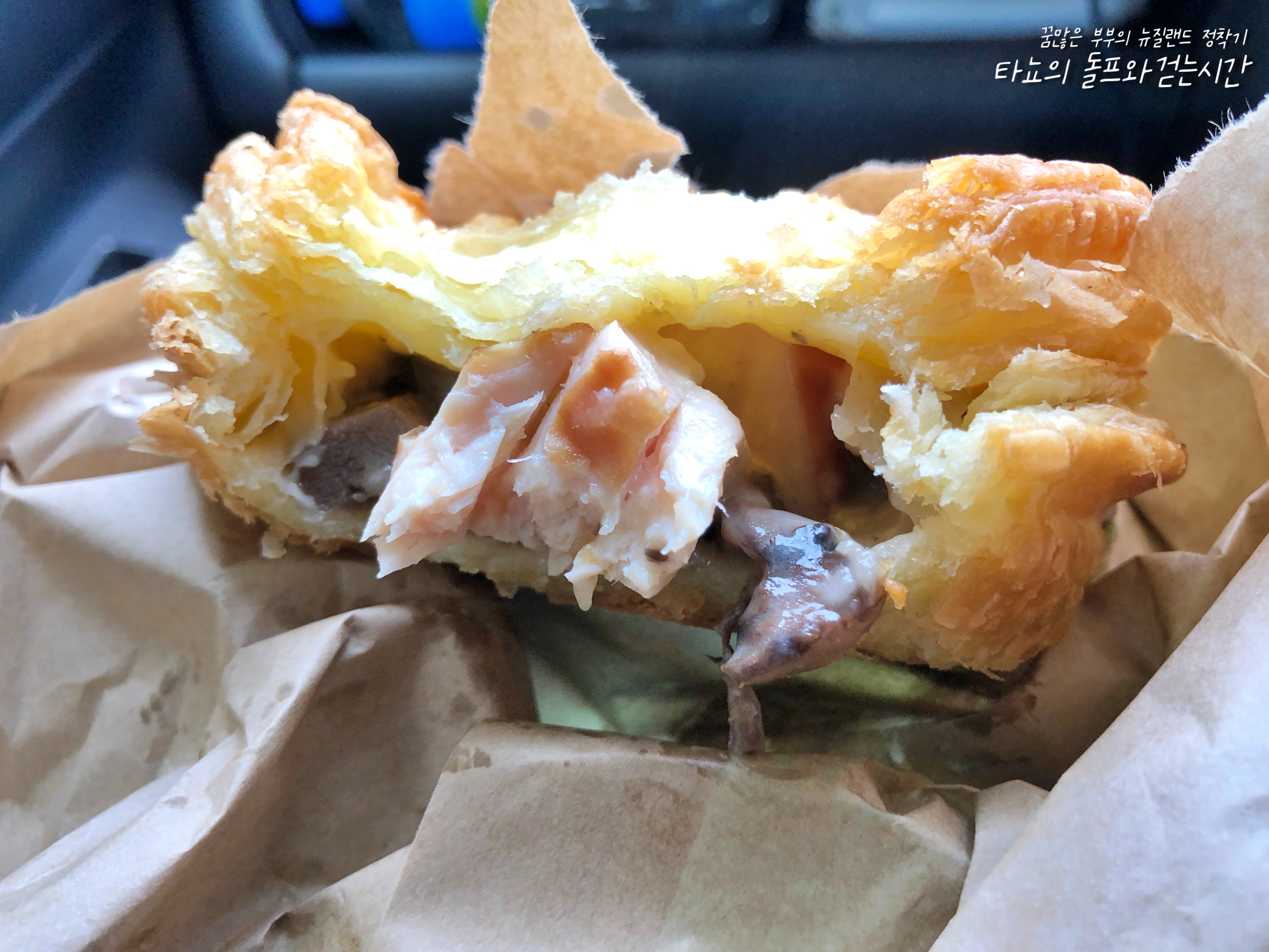 제 최애는 '치킨&머쉬룸($6)'입니다. 여기서 갖가지 다양한 파이를 먹어봤지만, 이만한 파이를 만나지 못했답니다. 정말 맛있어요. 호불호 없는 맛이고 10명이면 10명이 다 좋아할 맛입니다. 그래서 이 파이는 오전에 가도 다 팔리고 없을 때가 많습니다. 운이 좋아야 먹을 수 있어요. 페얼리 베이크 하우스의 파이 메뉴판은 분필로 적는 흑판인데요. 다 팔린 파이는 쓱 지워집니다. 만약 이 파이를 맛보시려거든 꼭 오전에 일찍 방문하시길 추천합니다.