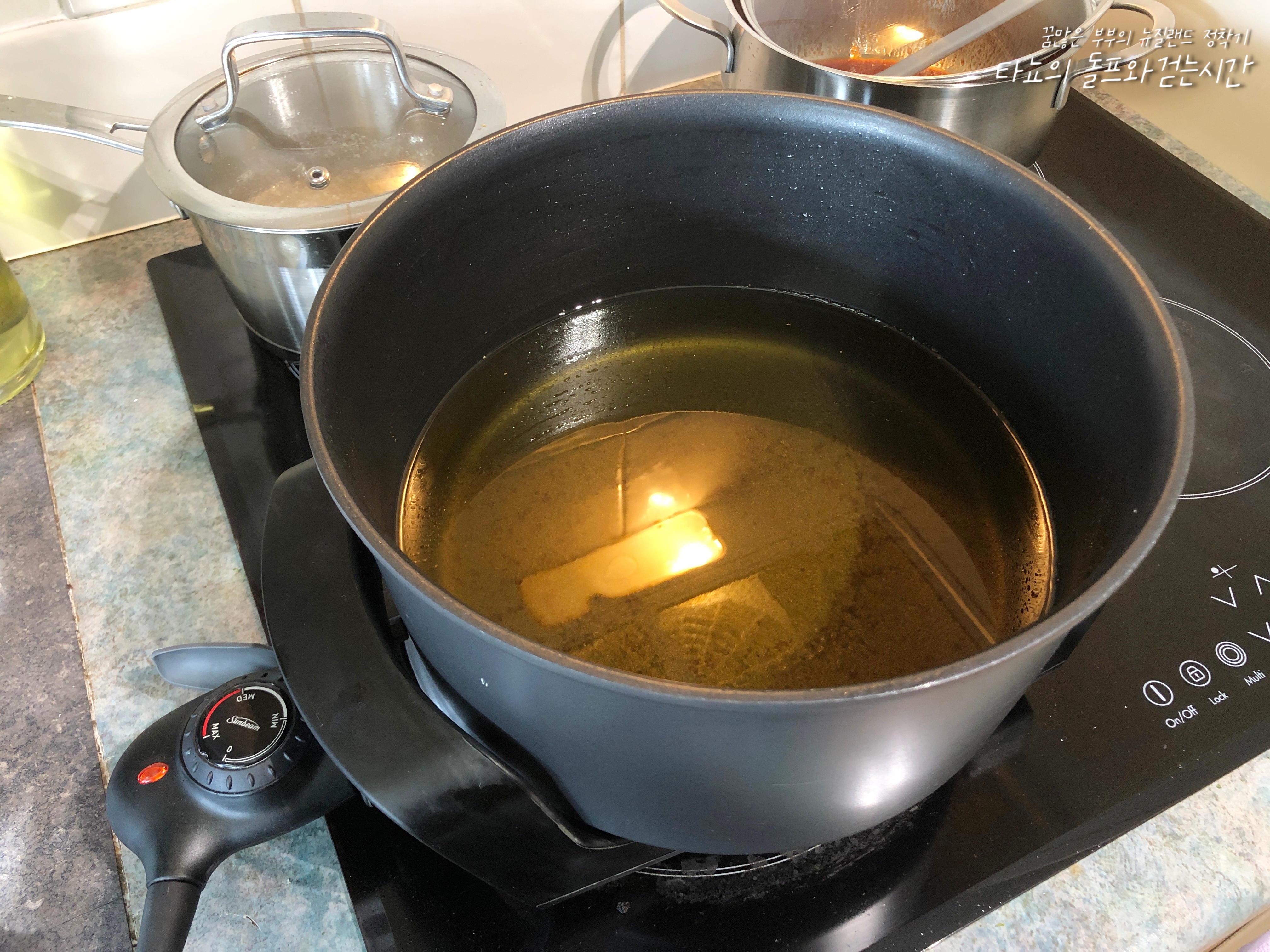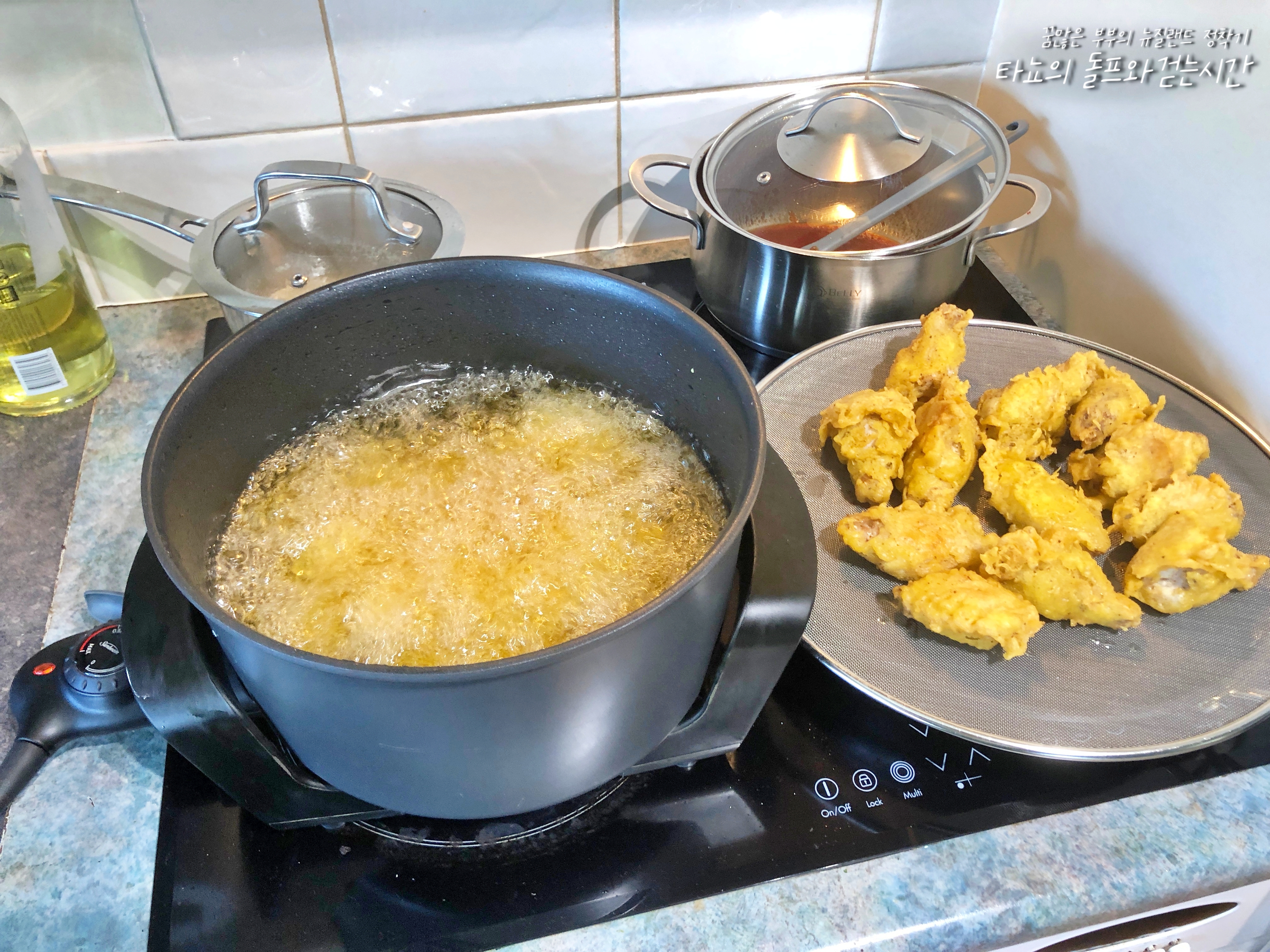 지글지글 튀겨지는 모습만 봐도 아주 그냥 배가 불렀습니다. 튀김기가 높아서 생각보다 옆으로 기름도 튀지 않아 좋았던 것 같아요.