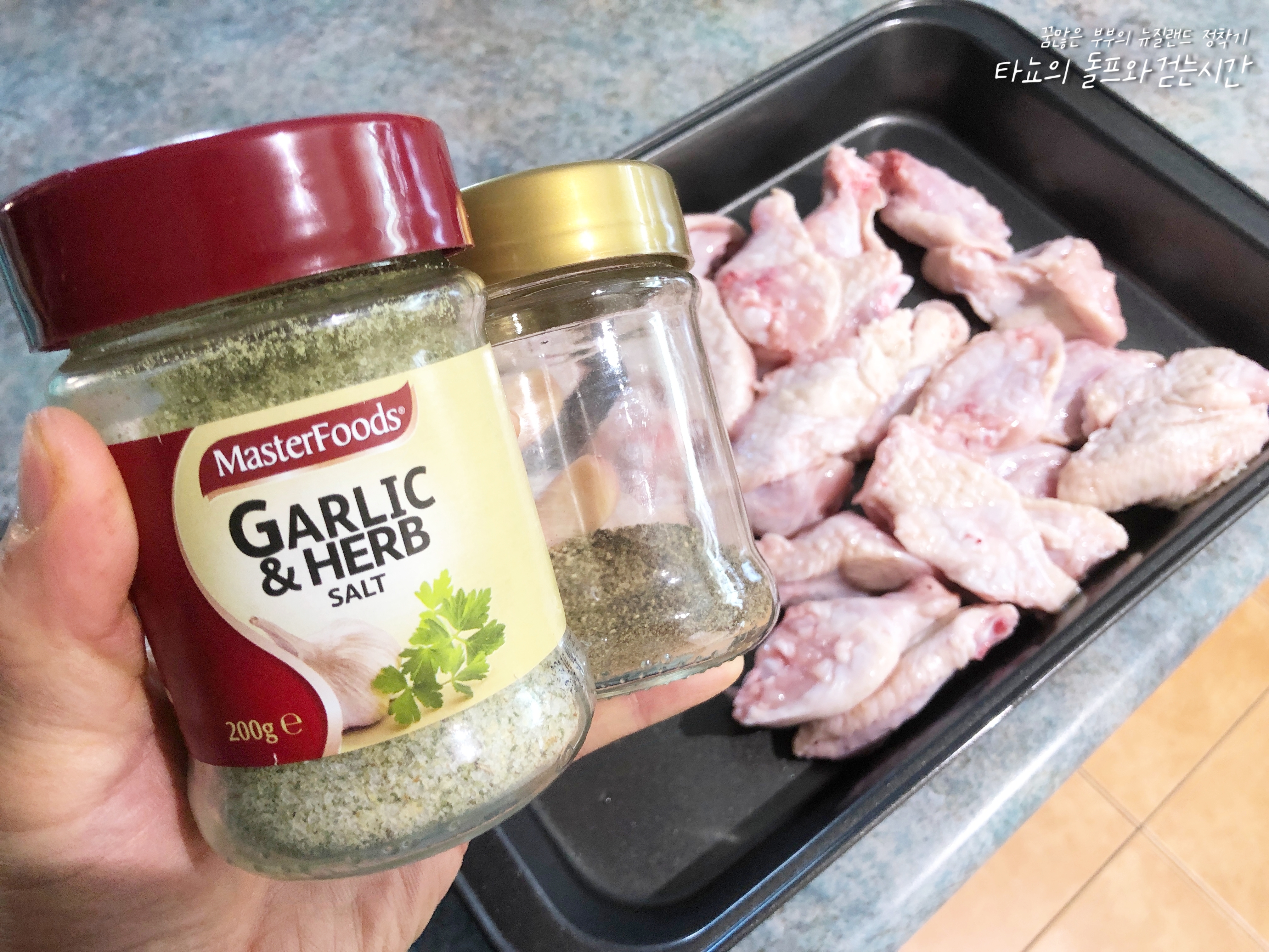 염지재료 : 마늘 허브 소금, 후추