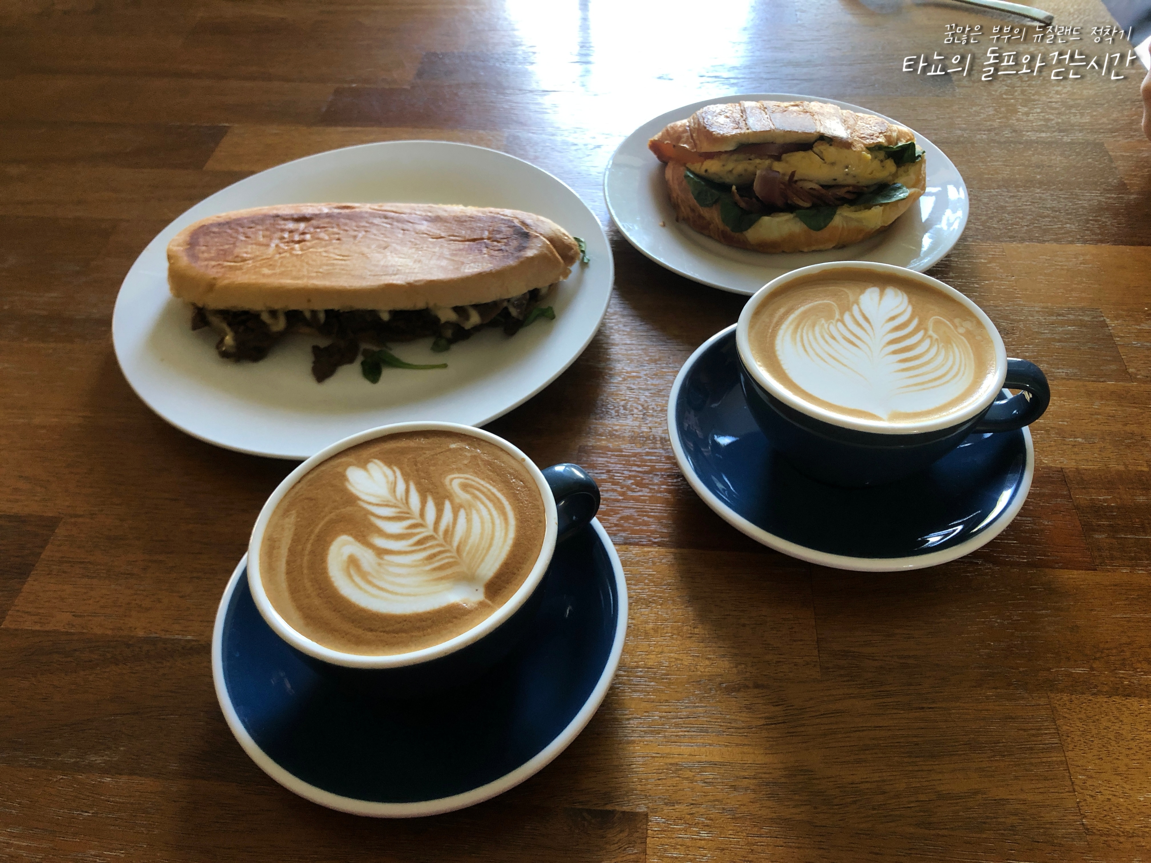 아침으로 준비한 것은 간단한 카페 음식입니다. 락다운이 시작되기 직전 카페에 들러 챙겨 왔던 음식은 이제 거의 다 먹었지만, 아직 몇 개가 남았습니다. 비프 파니니와 크로와상을 냉장고에서 꺼내고 카페에서 손님에게 나갈 때와 똑같이 준비했습니다. 파니니는 레인지 45초, 크로와상은 레인지 30초. 이후 토스터에 올려서 구웠습니다. 빵이 토스트 되는 동안 우리 두 사람의 커피를 준비했어요. 잠 덜 깬 상태에서 손 떨며 만든 플랫화이트 2잔... 덜덜덜...