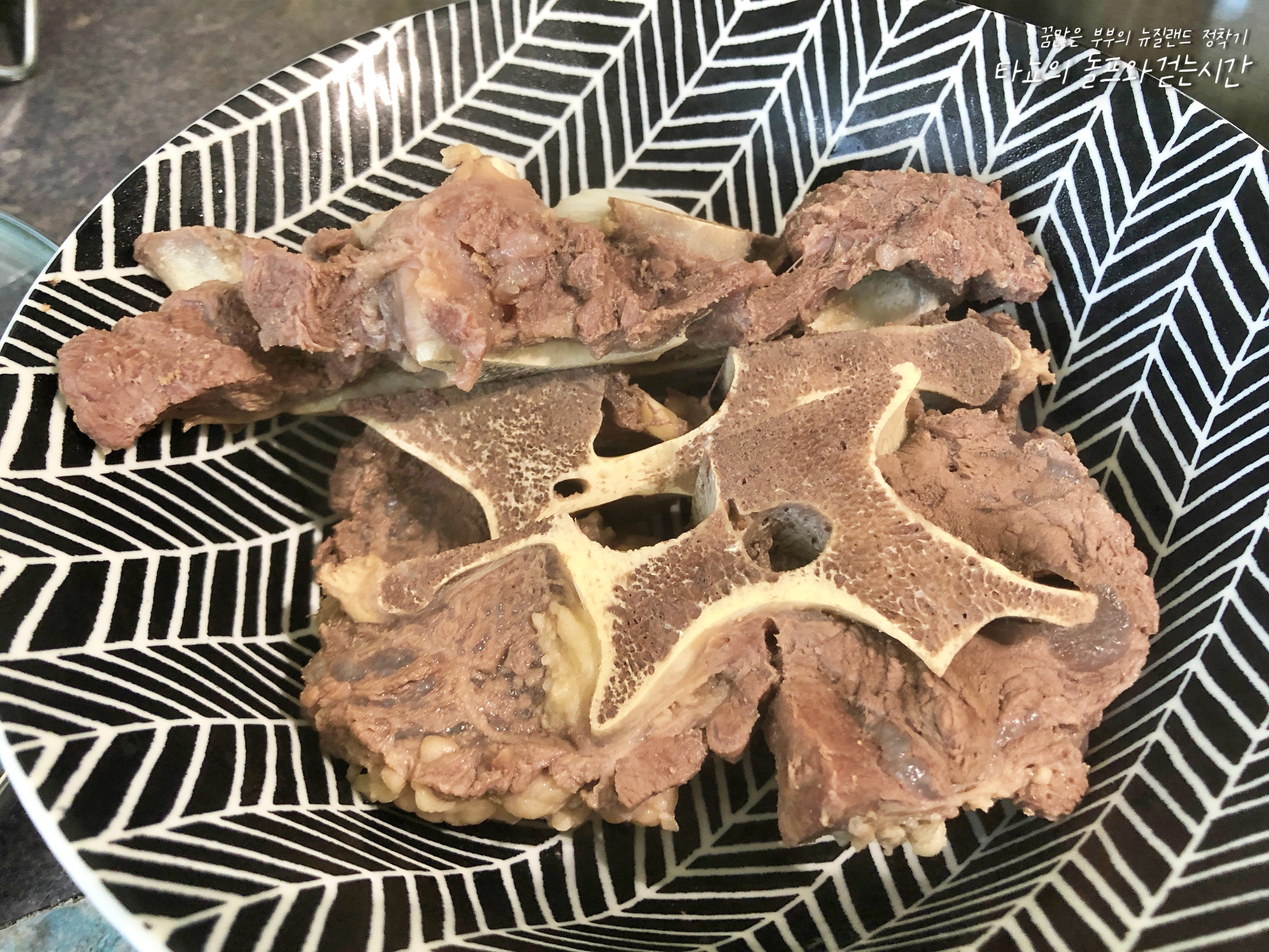 한 2시간 푹 삶았습니다. 락다운 중에 할게 뭐가 있을까요. 그저 이것저것 집에 필요했던 것들, 평소에 미처 못했던 것들, 이렇게 뼈 오래 삶기 등... 시간적으로 여유가 있어서 고기를 푹 삶기 참 좋았습니다. 2시간을 삶으니 살코기가 뼈에서 훌훌 떨어지더라고요.