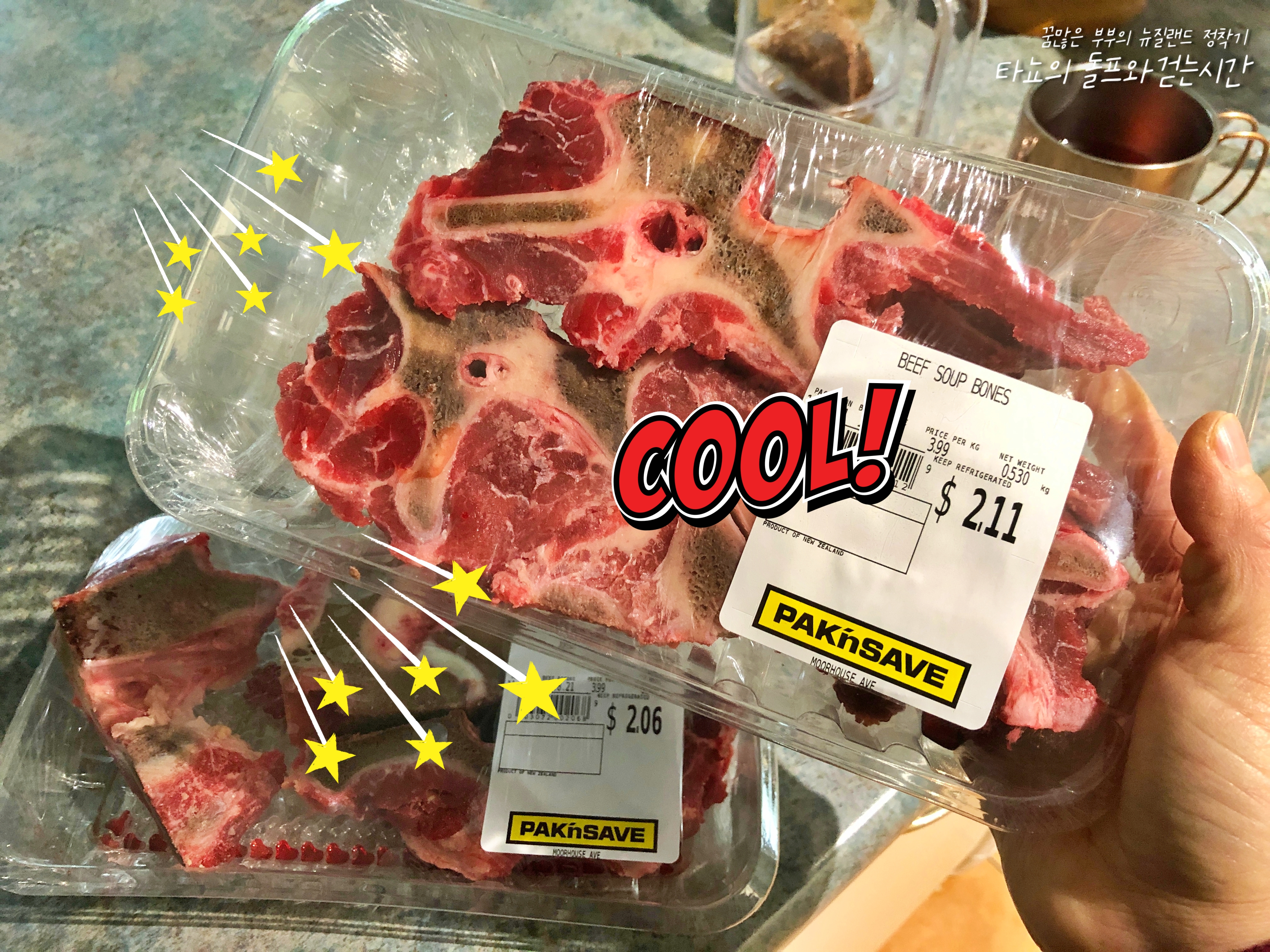 고기 코너에서 소뼈를 사 왔네요. 현지 마트에서는 소뼈, 돼지뼈 등을 굉장히 저렴하게 판매하기 때문에 살이 두툼하게 붙은 것이 보이면 일단 사 오라고 부탁을 했었습니다. 신랑이 제 말을 잊지 않고 이렇게 종종 사 옵니다. 지난번에는 돼지뼈를 사 와서 맛있게 먹었는데요. 이번에는 소뼈가 굉장히 저렴해서 이것으로 구입했다고 합니다. 아주 두툼하게 살이 붙은 소뼈는 고작 2달러 11센트입니다. 한국 돈으로 1,600원 정도 될 것 같네요.