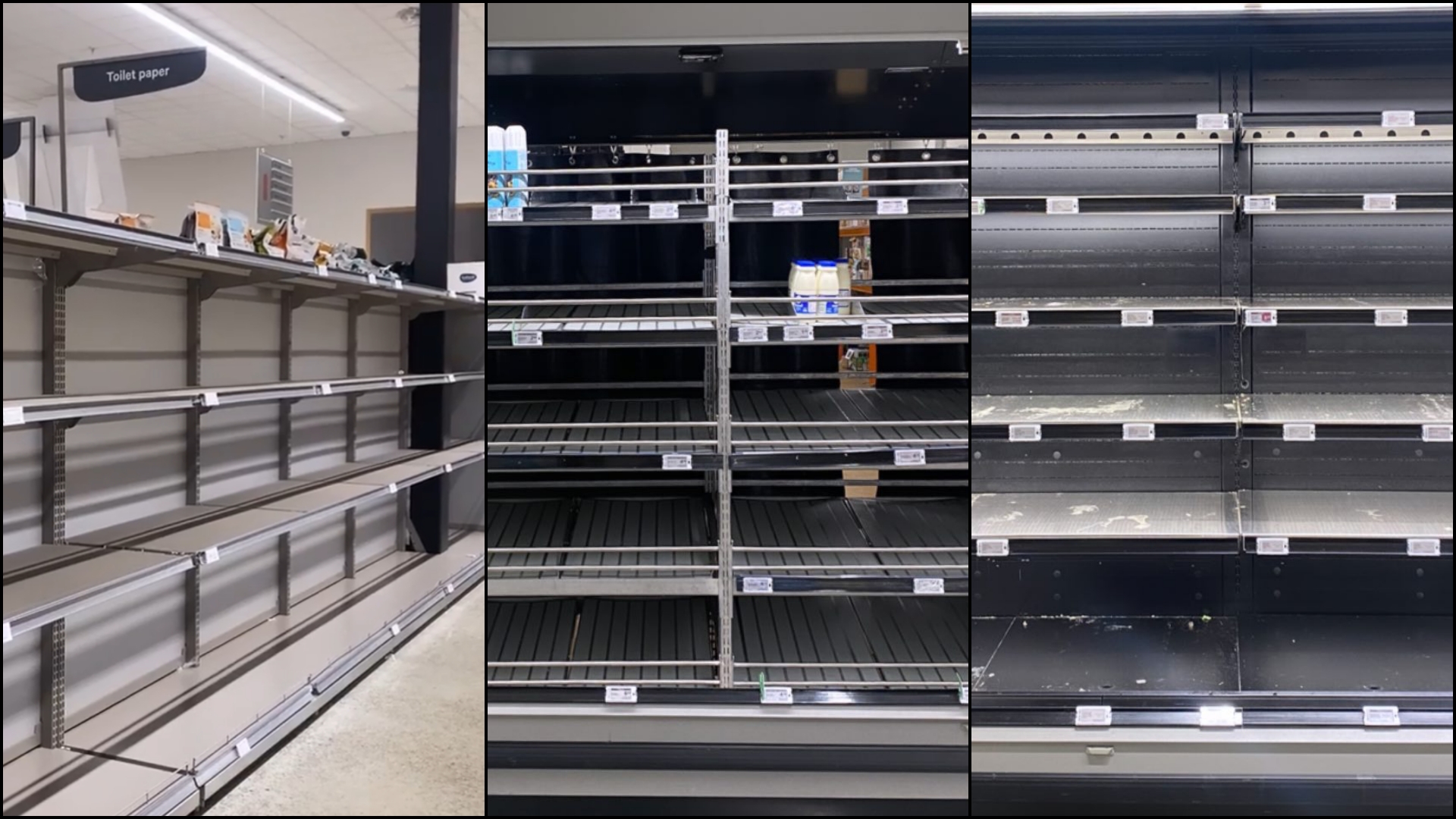 어제 찍은 카운트다운(대형마트)의 휴지 코너, 우유코너, 달걀 코너의 모습입니다. 정말 싹 빈 모습을 본 건 참 오랜만인 것 같네요. 미국처럼 심각한 편은 아니지만, 그래도 여기도 패닉에 빠진 사람들의 일단 쓸어가는 '패닉 바이'가 있는 것 같습니다.