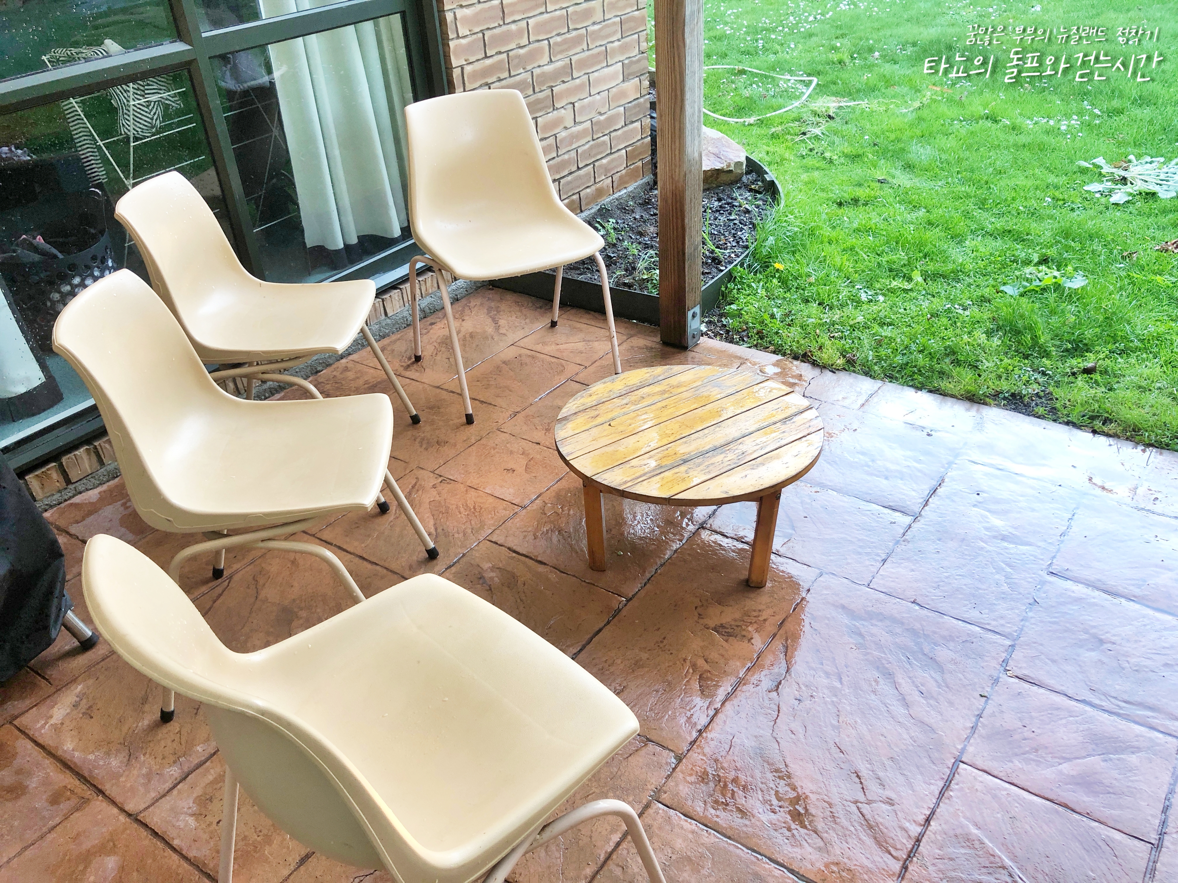 지저분하게 이것저것 쌓여있던 이 공간을 깨끗하게 물청소하고 야외에 쌓여있던 의자도 먼지를 털고 물세척을 마친 뒤 말렸습니다. 낡고 삐그덕거리는 작은 티테이블도 물청소를 마쳤어요. 저기 앉아서 커피 마시면서 하늘도 보고 나무도 보고 잔디도 보면 마음이 좋지 않을까 생각했습니다. 오늘은 청소하다가 시간이 다 갔고요. 내일은 저기 앉아서 여유롭게 커피를 마셔 봐야겠어요. ^^