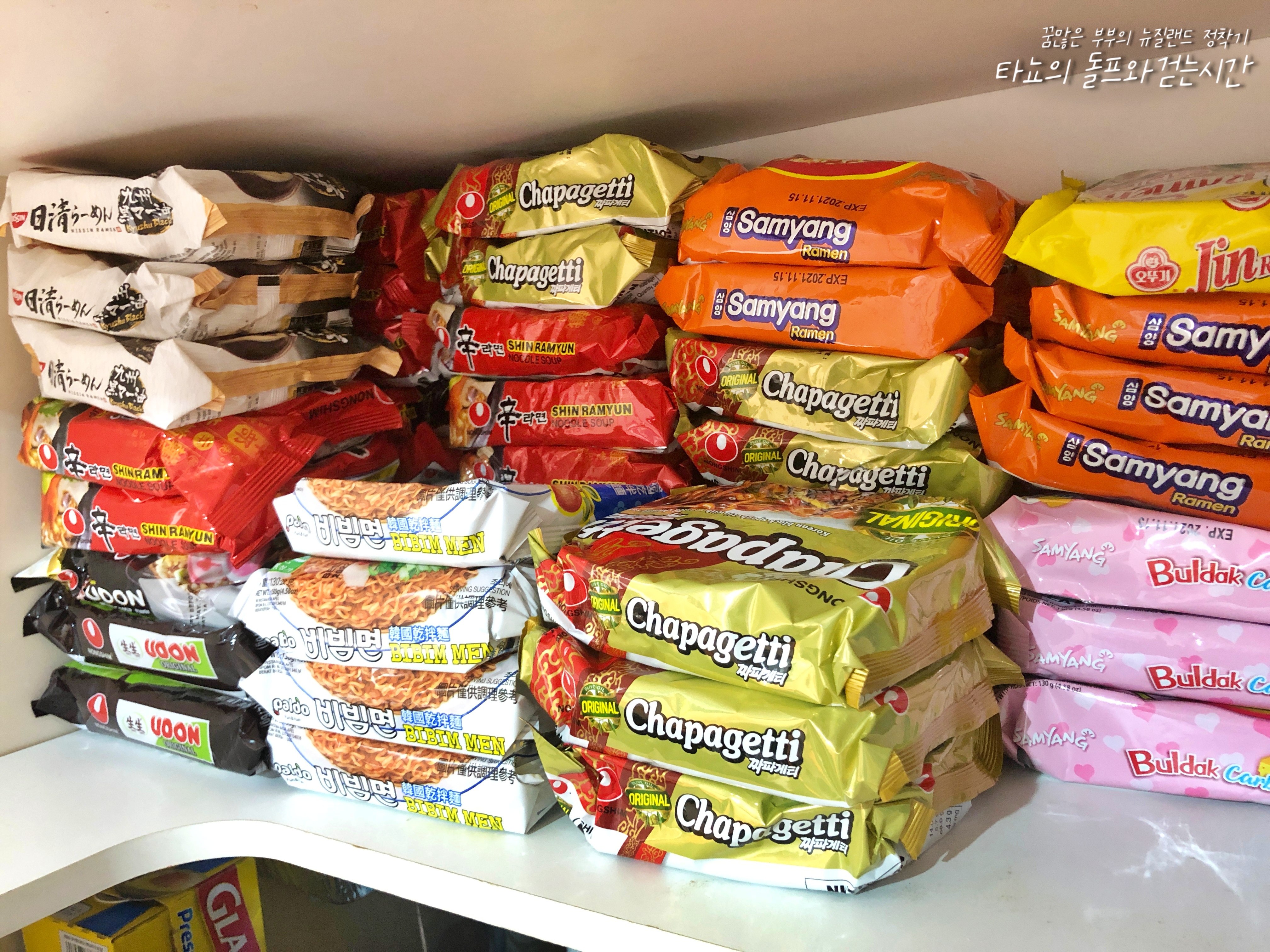 한국 라면 코너에는 라면이 가득합니다. 로컬 마트에도 한국 라면 많다면서 신랑이 사진을 찍어왔더라고요.