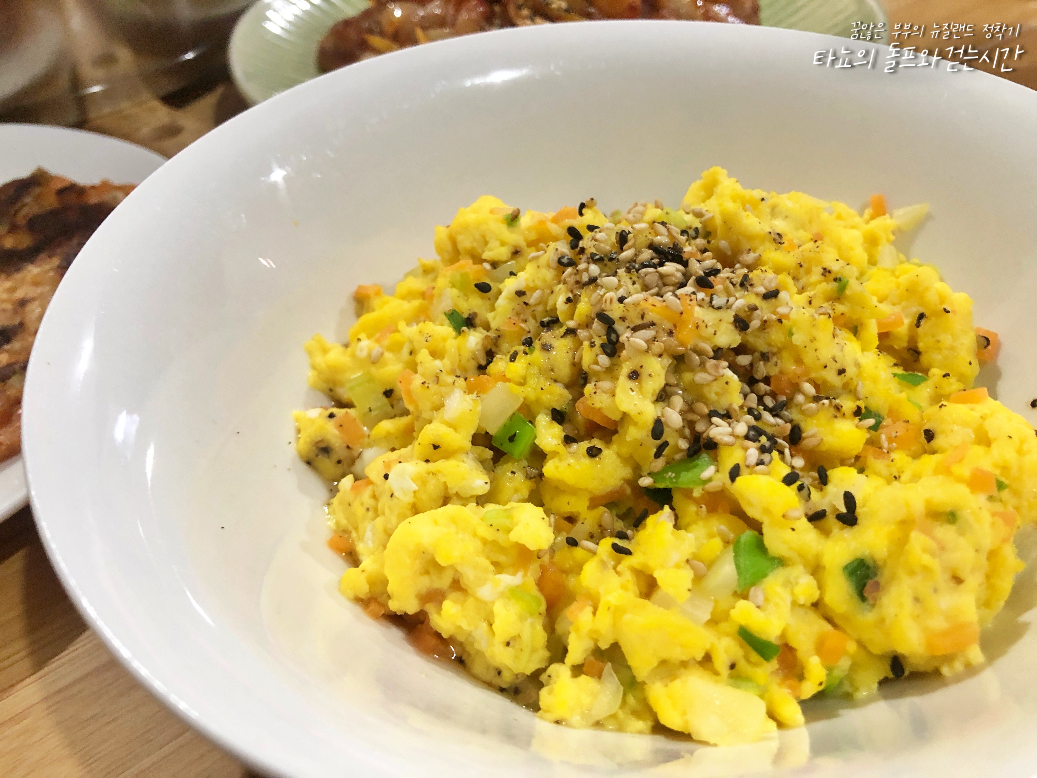 냄비 계란찜 만들기 재료 : 달걀 4개, 물 40ml, 설탕 1/2 작은술, 소금 1/2 작은술, 다진 당근 2큰술, 다진 파 2큰술, 참기름, 참깨, 후추 조금 전자레인지로 쉽게 계란찜 만드는 요즘이지만, 가끔 조금