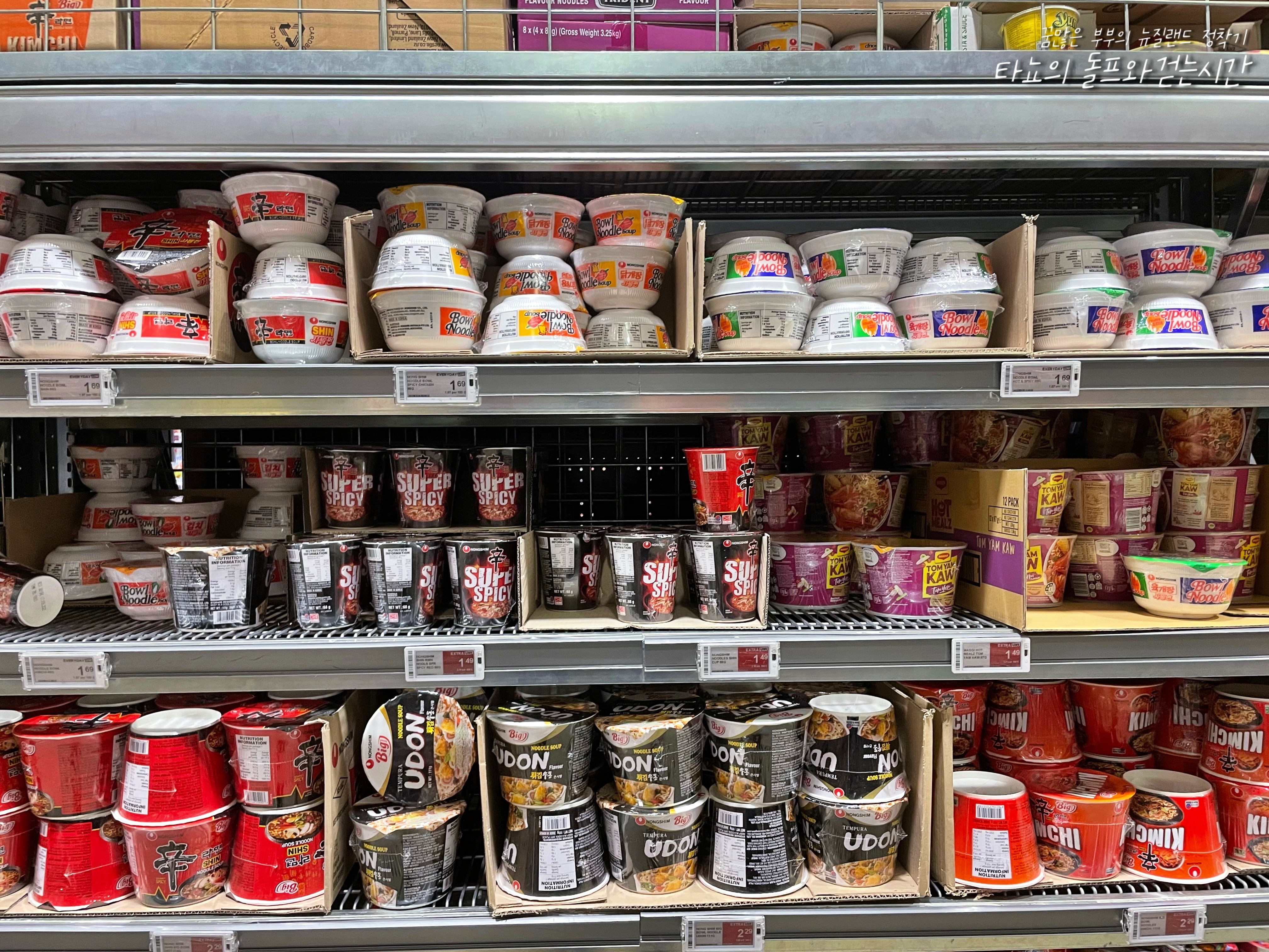 한국 라면 코너에는 라면이 가득합니다. 로컬 마트에도 한국 라면 많다면서 신랑이 사진을 찍어왔더라고요.