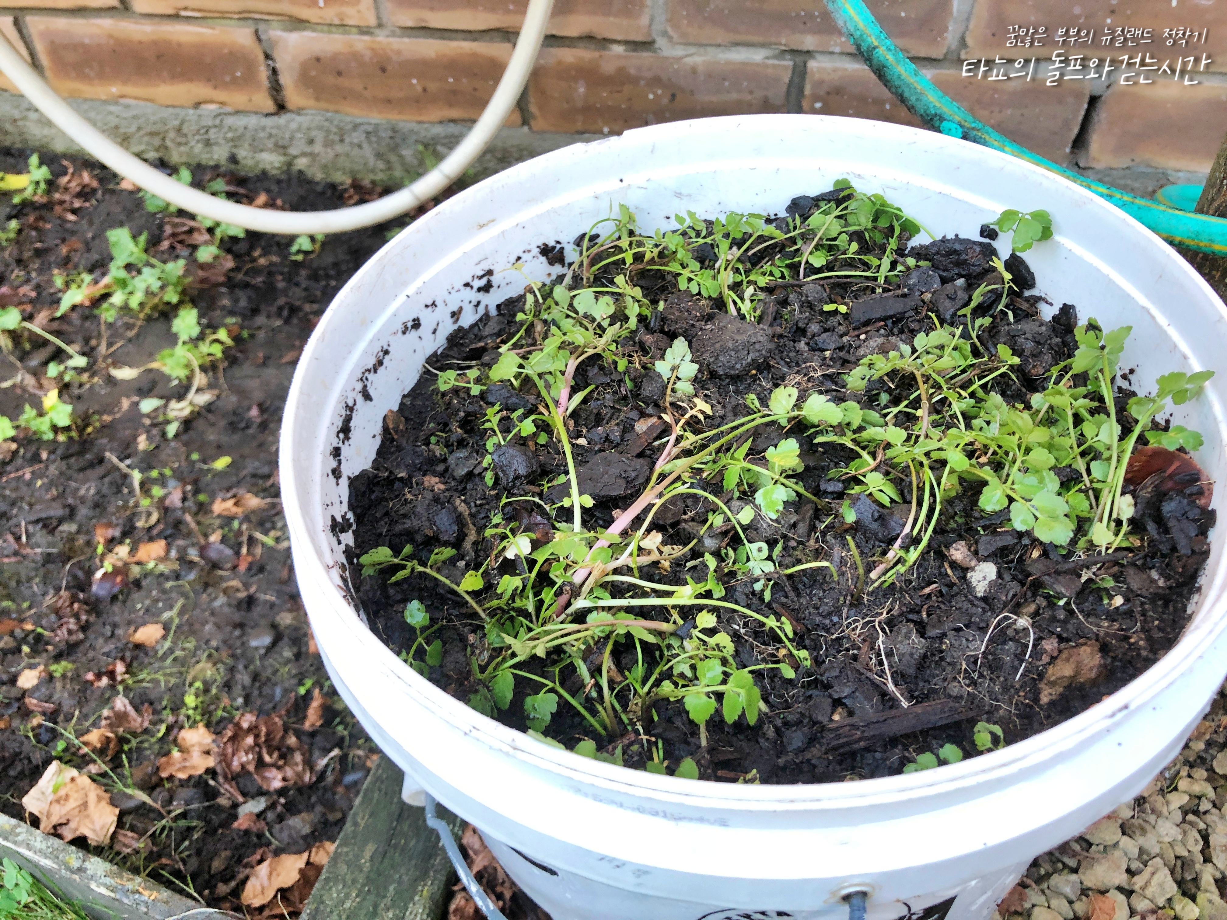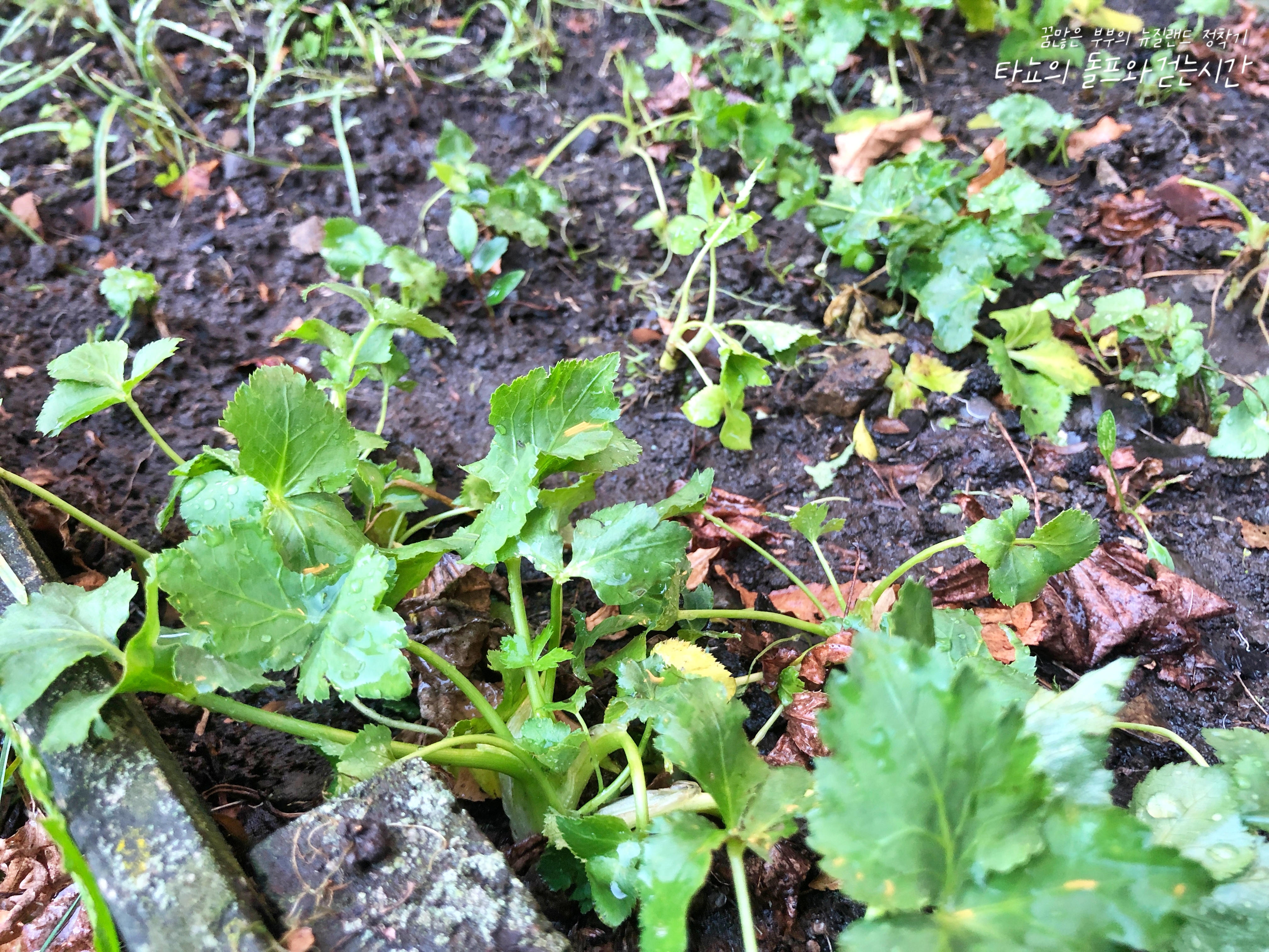 지난겨울 내내 신경도 쓰지 않았던 텃밭에서 참나물이 또 올라왔습니다. 아무리 춥다 해도 한국만큼 춥지는 않다 보니 뿌리가 얼어 죽지는 않습니다. 겨울이면 죽은 것 같다가도 봄이면 또 이렇게 올라옵니다. 미나리는 죽지는 않았지만 많이 약해졌길래 흙을 갈고 좁지만 조금 깊은 통으로 옮겼습니다. 넓은데 키우면 이리저리 잘 퍼진다고 하지만, 어차피 저희 두 사람 먹을 것이라 그리 많이 필요하지도 않거든요. 딱 저 통만큼만 가득 채워서 잘 자랐으면 좋겠네요.