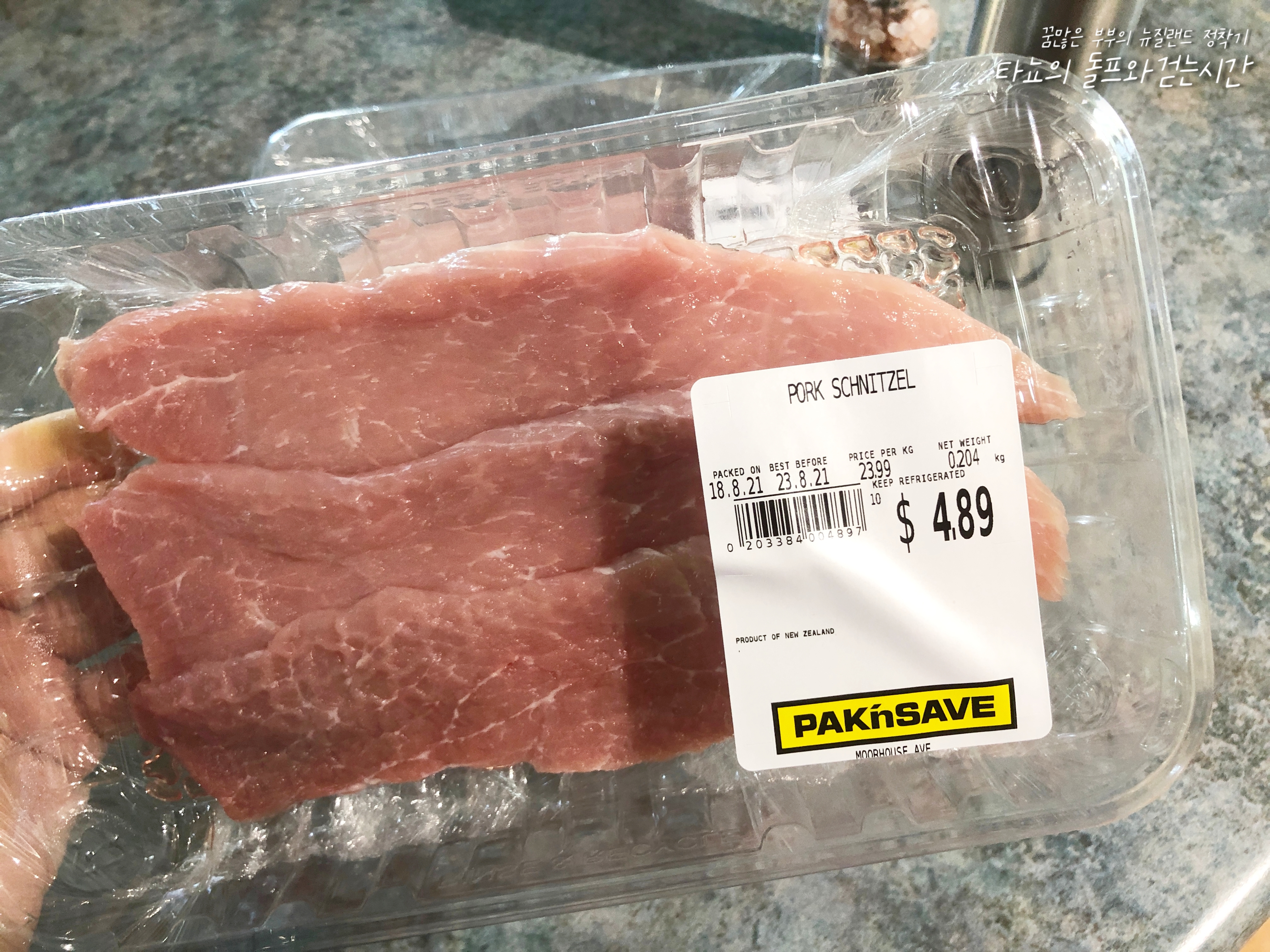 저는 로컬마트에서 판매하는 슈니첼용 안심을 구입했습니다. 사실 더 얇게 썰린 고기가 필요했지만, 그나마 이게 가장 얇게 썰린 고기였기에 선택지가 없었습니다. 슈니첼은 '얇은 고기'라는 뜻을 가진 단어이며 이 고기를 가지고 한국에서 먹는 돈가스와 흡사한 음식 '슈니첼(독일 음식)'을 만듭니다. 최초의 슈니첼은 소고기로 만든 것이었지만...